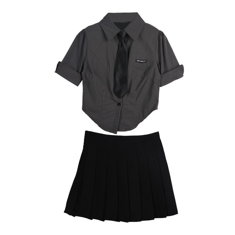 純粋欲望ブラウススカートセットプレッピースタイル JK ツーピーススーツ夏半袖白シャツプリーツスカート ショート ホワイト ハーフスリーブ サマー 夏物