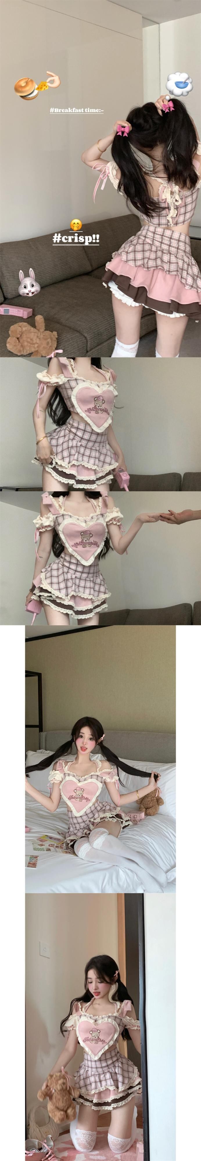 スウィートガール格子縞セクシー夏スーツホルターネックストラップタンクトップウエスト A ラインショートスカート 2 点セット服 大人ガーリー キュート カジュアル サマー 夏物 Aライン