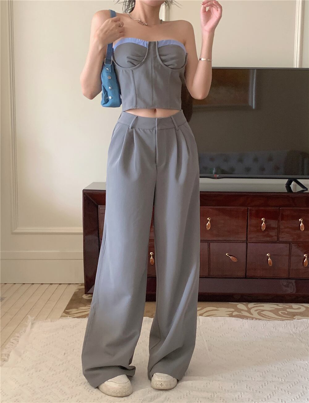 スイート クール スタイル スーツ レディース 夏 ストラップレス トップ ウエスト ワイドレッグ パンツ 2 点セット 服 大人ガーリー スウィート キュート カジュアル サマー 夏物 ワイドパンツ