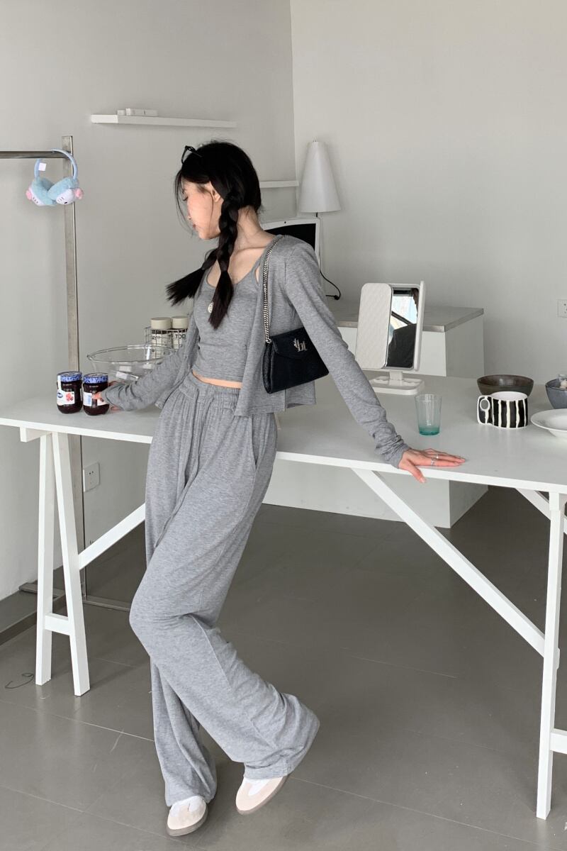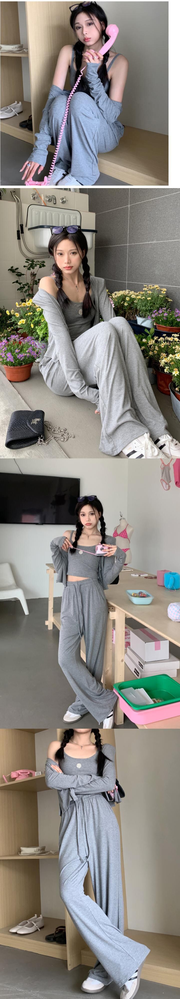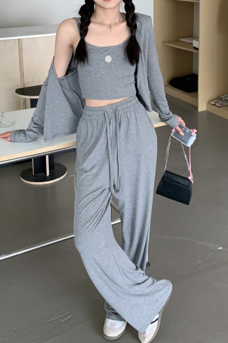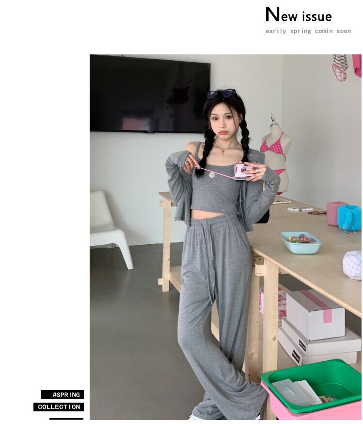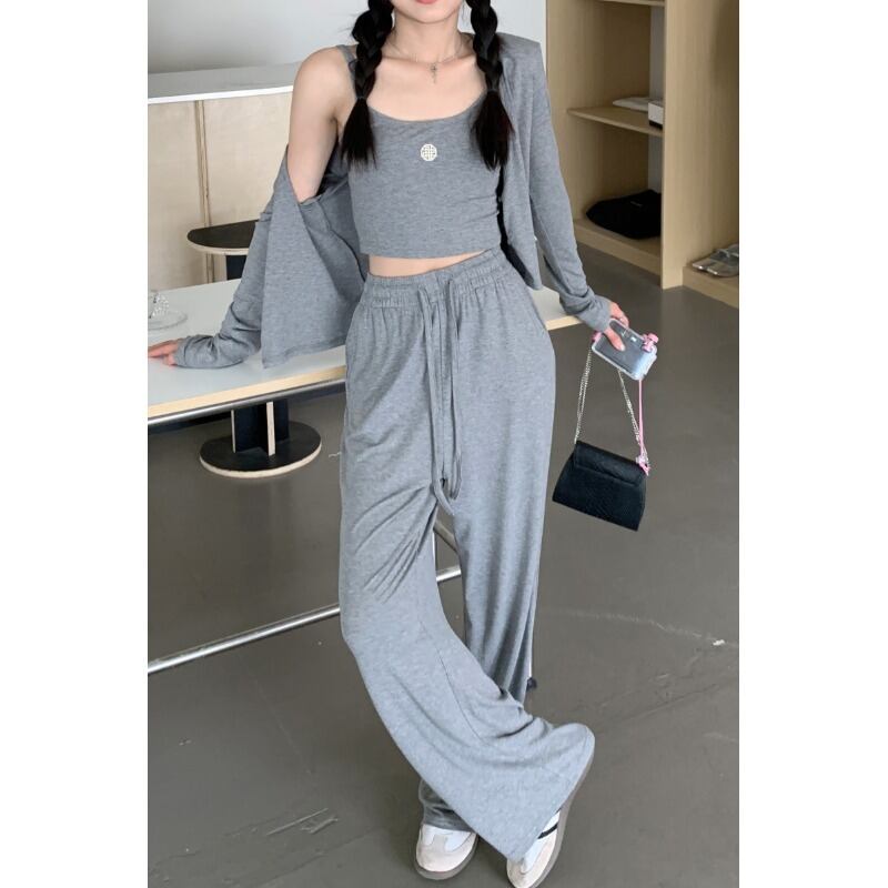 ホットガールスーツ夏長袖ショート日焼け止めカーディガンスリングタンクトップパンツ 3 点セット服 ロング サマー 夏物