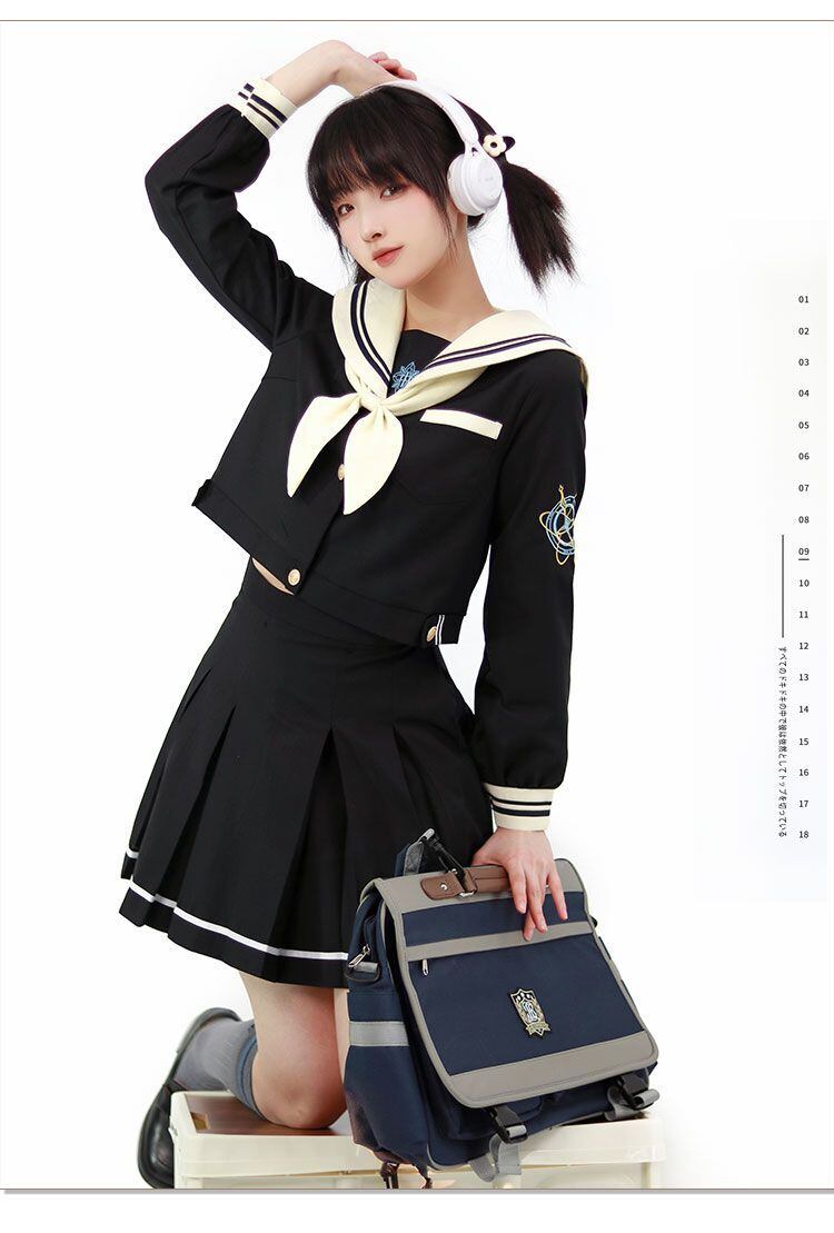ese プレッピースタイル JK スーツ レディース 長袖 セーラーカラー シャツ ウエスト A ライン プリーツ スカート 2 点セット ロング Aライン