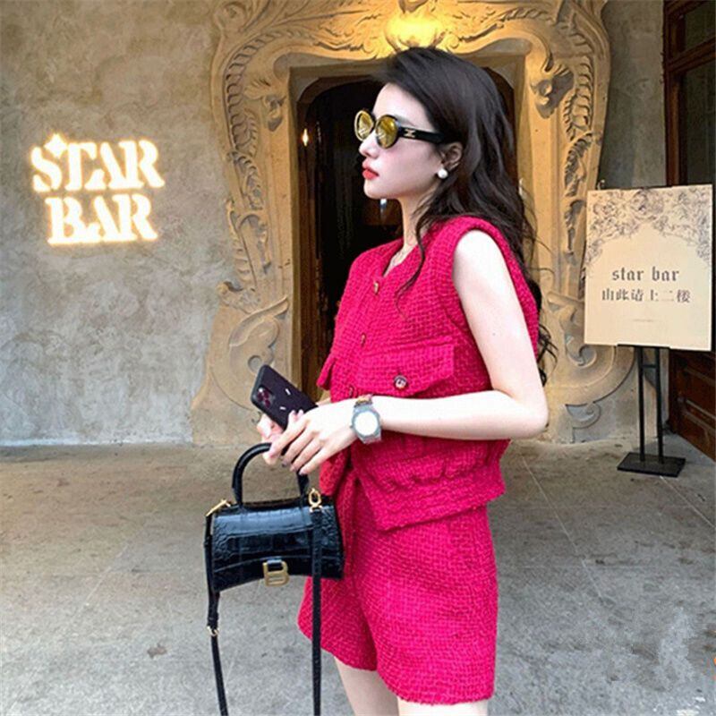 ホットガールスーツ夏ラウンドネックノースリーブベストトップウエストショーツツーピースセット服 サマー 夏物 ブルマー Oネック