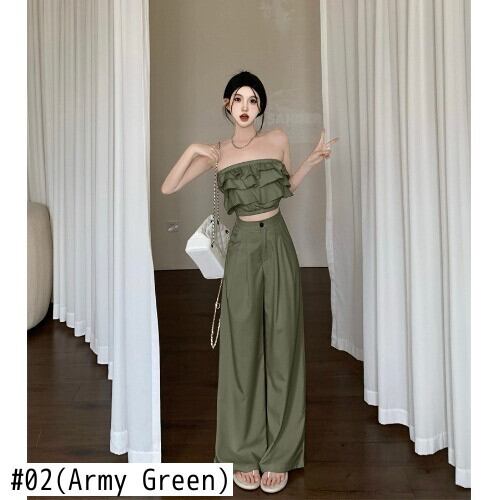 ホットガールスーツケーキストラップレスベストショートトップウエストワイドレッグパンツツーピースセット服 ワイドパンツ