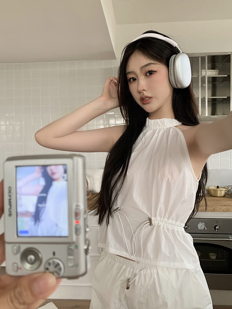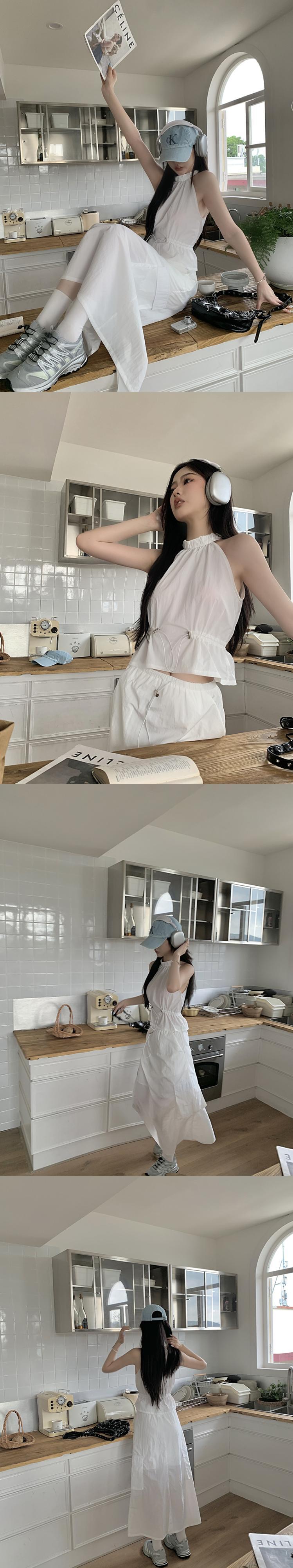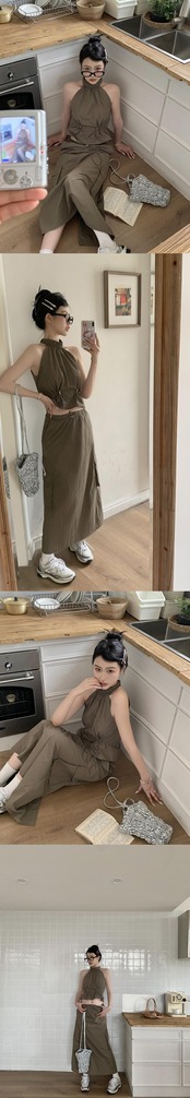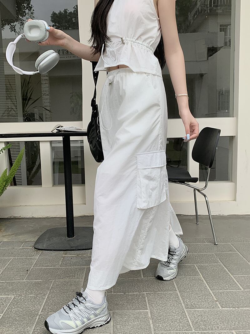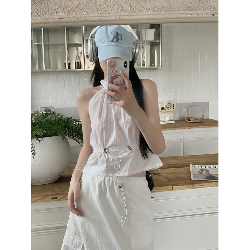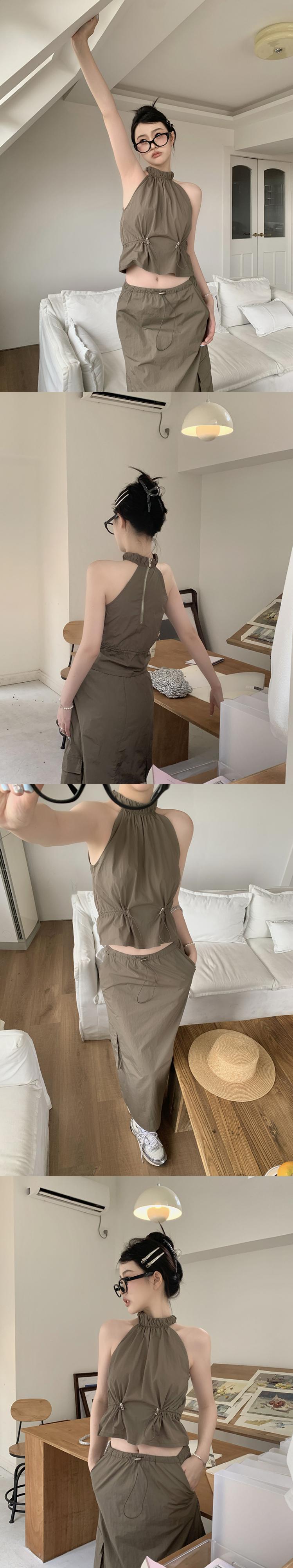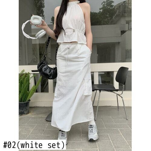 ホットガール通勤スーツホルターネックタンクトップミディアム丈巾着ロングスカートツーピースセット服