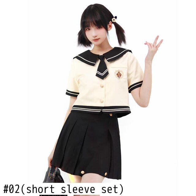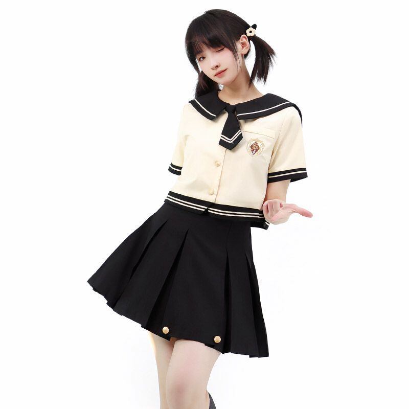 プレッピースタイル JK スーツ レディース 半袖 セーラーカラー シャツ ウエスト Aライン ミニスカート 2点セット 服