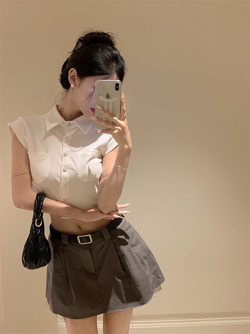 夏スタイルスーツ多用途フライングスリーブショートスリムシャツグレーミニスカートツーピースセット服 サマー 夏物