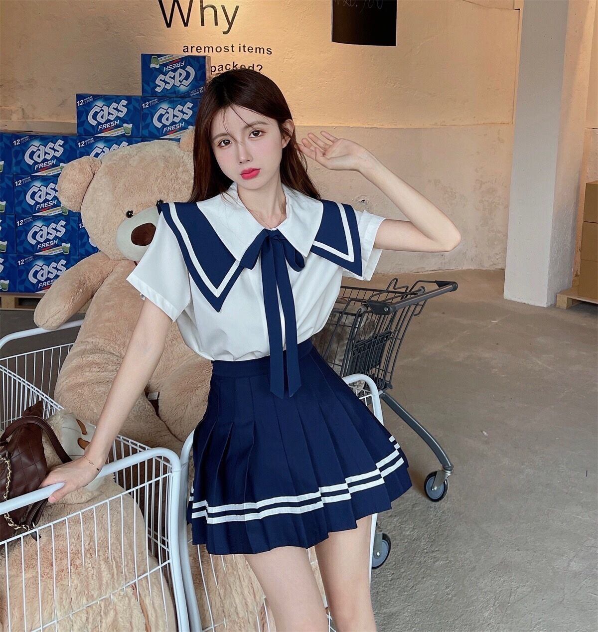 プレッピースタイル スイート JK スーツ レディース 夏 かわいい リボン 半袖シャツ ウエスト A ライン プリーツ スカート 2 点セット 大人ガーリー スウィート キュート カジュアル サマー 夏物 Aライン