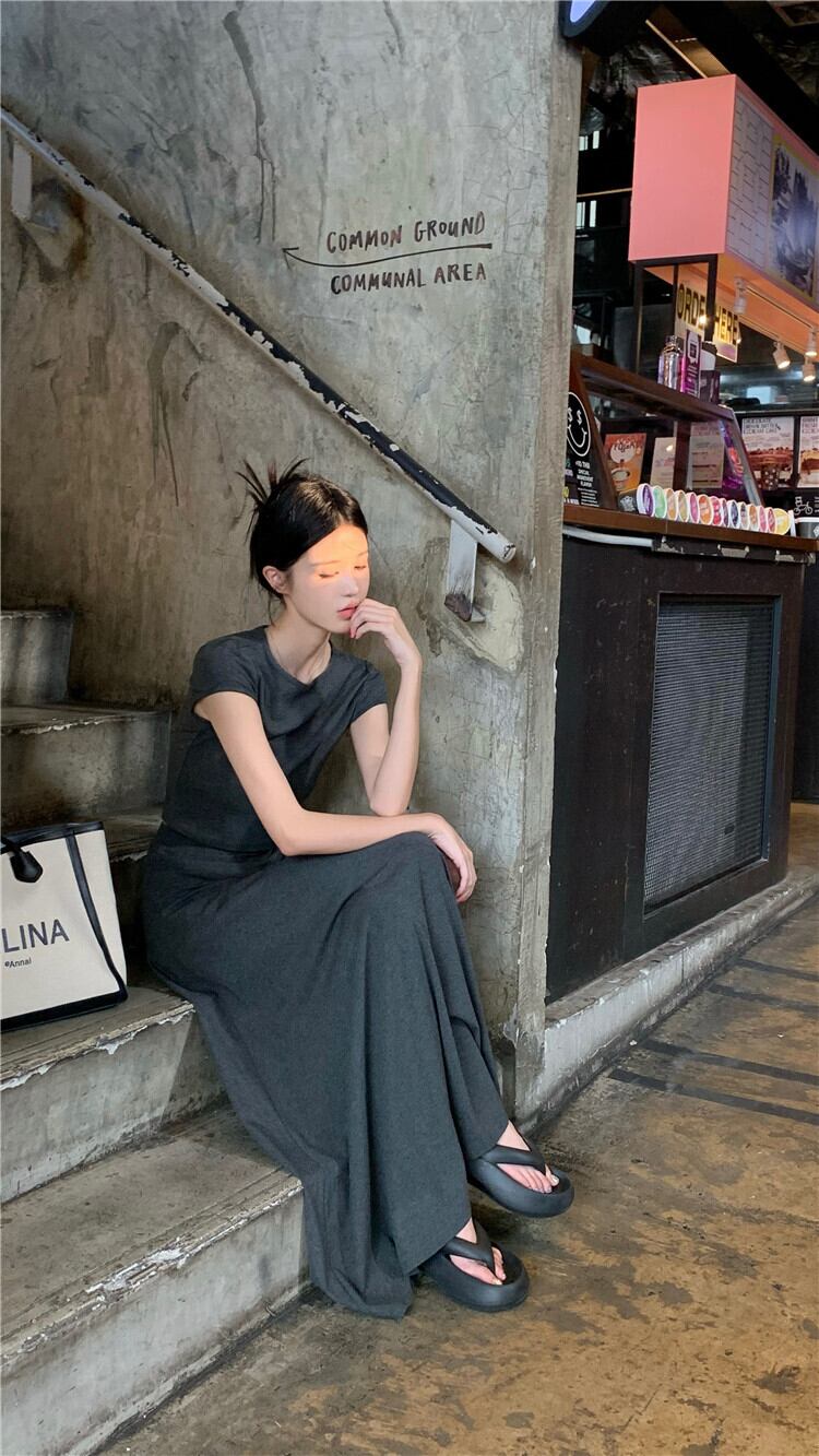 グレースーツ レディース ラウンドネック 半袖 ショートトップ ウエスト ロングスカート 2点セット 服 Oネック