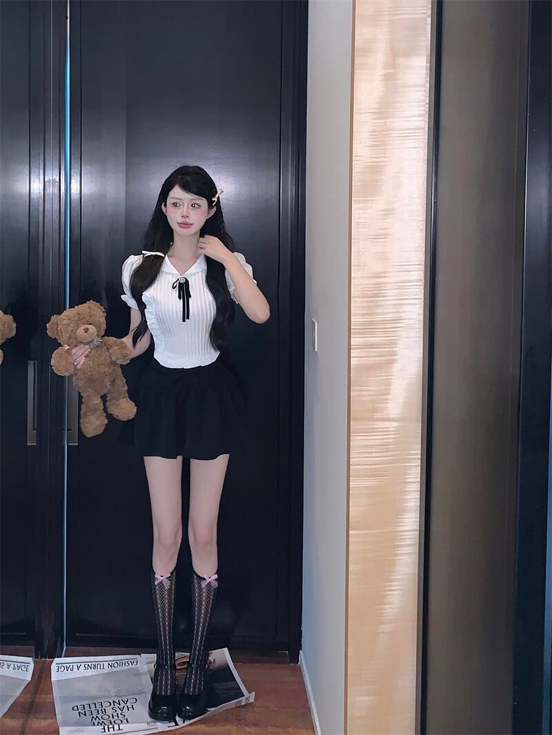 スイートガールスーツバブルスリーブシャツトップソリッドウエストリボン花 A ラインスカート 2 点セット服 大人ガーリー スウィート キュート カジュアル Aライン ソリッドカラー