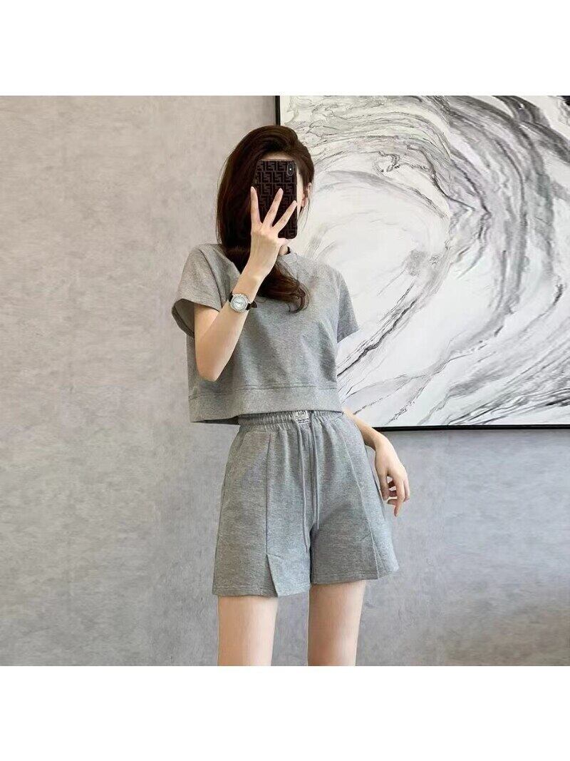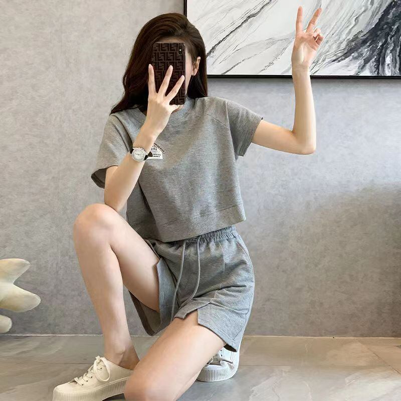 ホットガールセット夏ルーズスポーツ半袖トップウエストショーツツーピースセット服 サマー 夏物 ブルマー