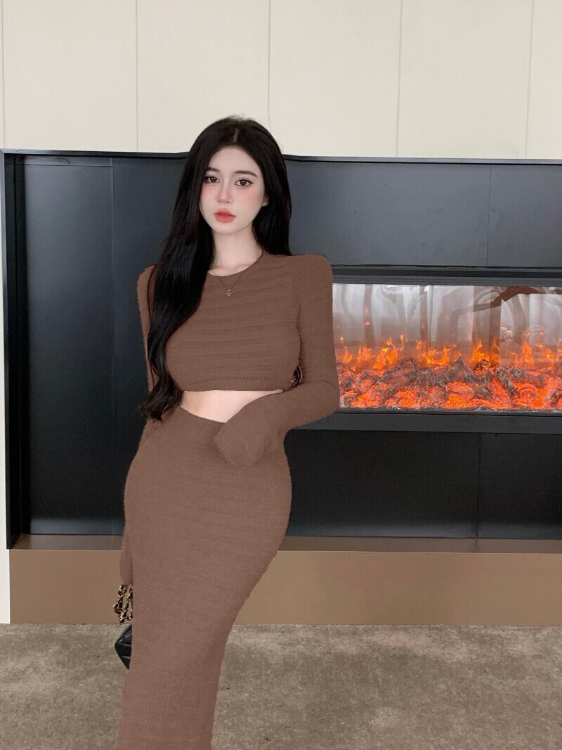 優しいニットスーツショートイミテーションミンクニットセーターウエストスカートツーピースセット服