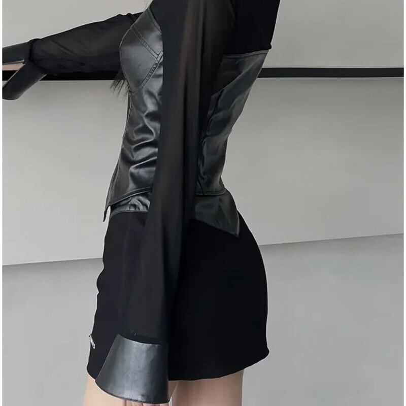 スプライシングレザースカート春パーソナライズされたショートハーフスカートヨーロッパ/アメリカンスパイシーセクシースカートボトム スプリング 春物 ヨーロピアン