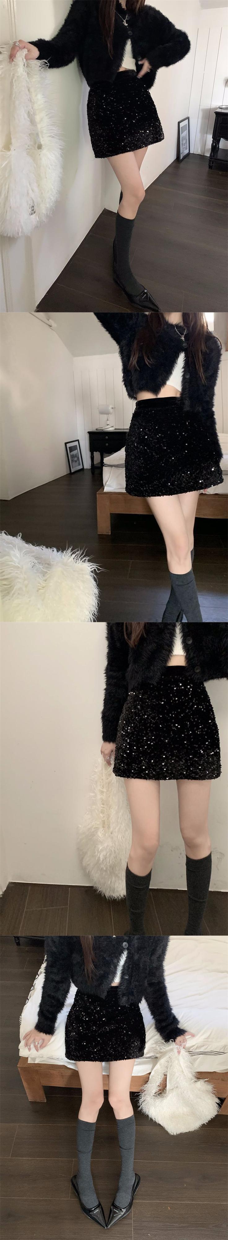 スパンコールスカート秋/冬バージョン純粋風ウエストスリム A-word ヒップスカートボトム オータム 秋物 ウィンター 冬物 ピュア