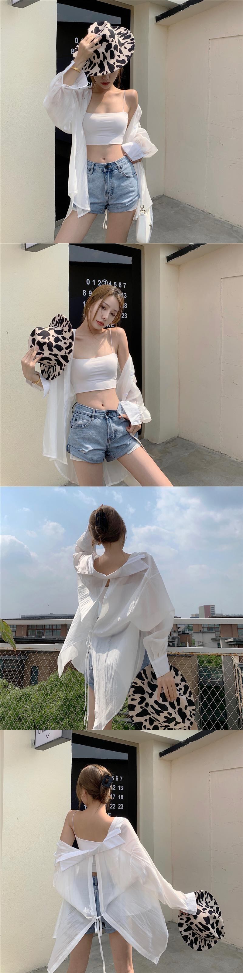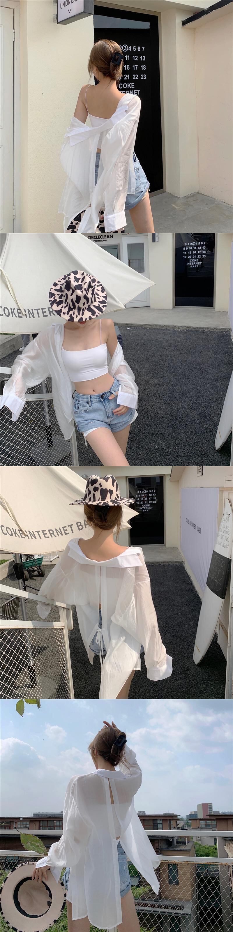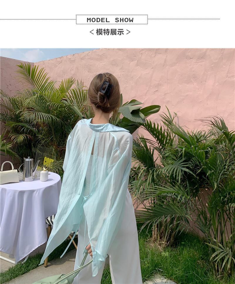 ブラウスソリッドウェア早春薄い純粋シャツスプリットバックルーズ日焼け止め長袖シャツポロ襟 ロング スプリング 春物 ピュア ソリッドカラー