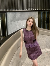 スイートホットガールスーツ夏パープルラウンドネックテルタンクトップウエスト A ラインラップヒップミニスカート 2 点セット 大人ガーリー スウィート キュート カジュアル サマー 夏物 Oネック Aライン