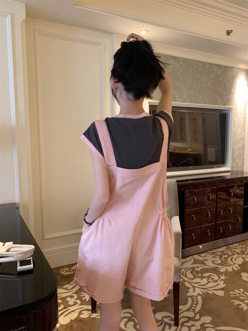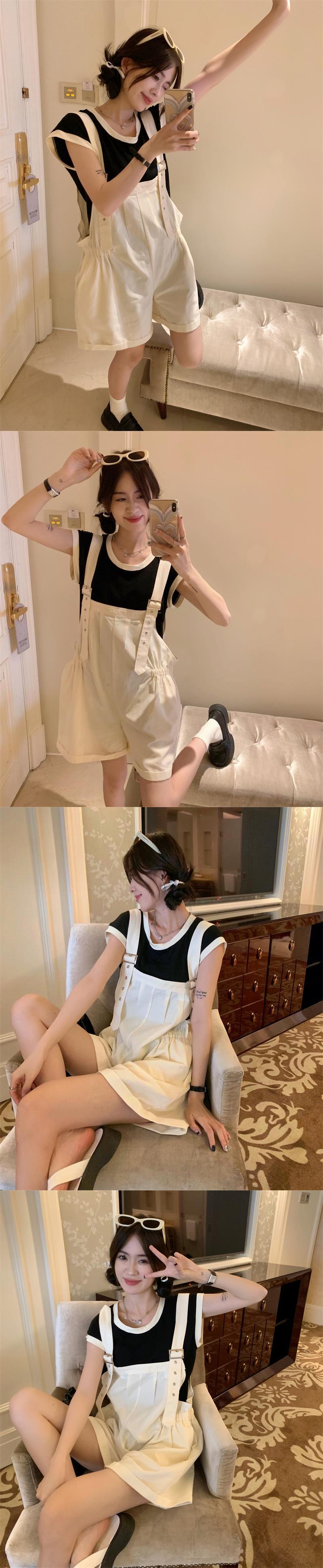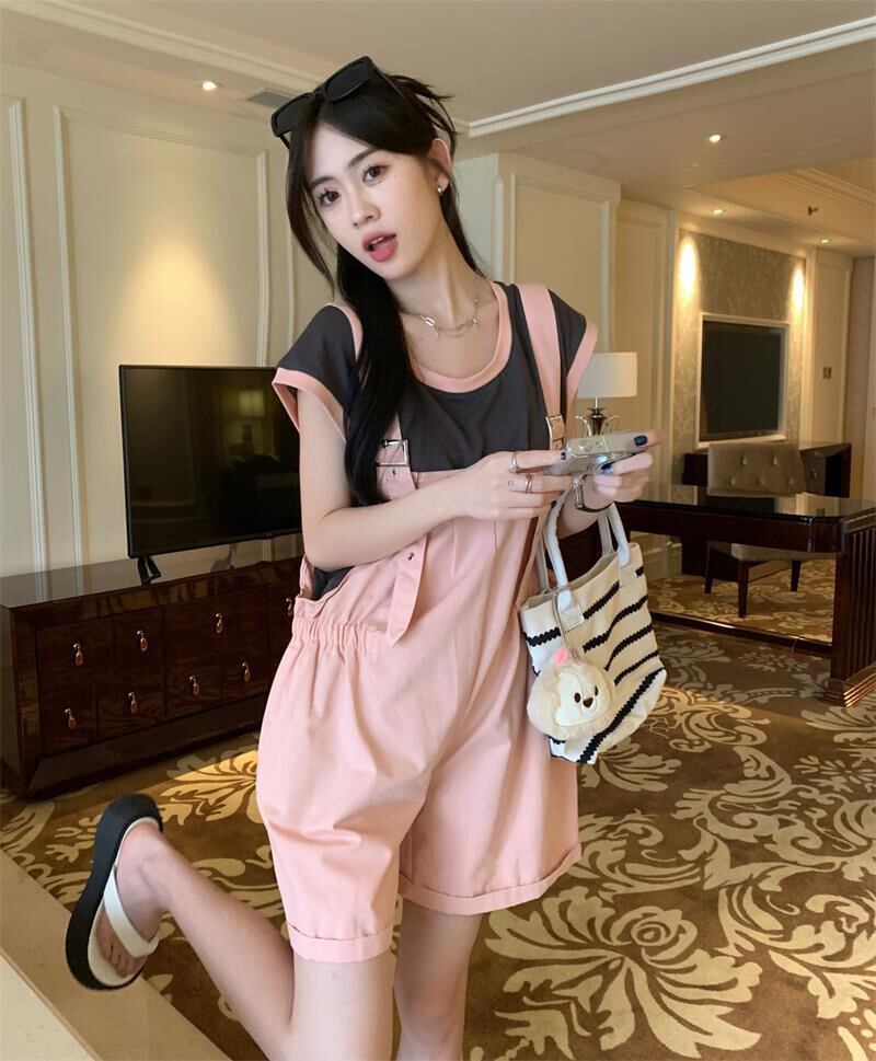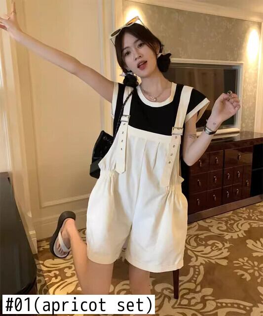 スイートホットガールスーツルーズ多用途カラーコントラスト Tシャツ巾着スリムフィットワイドレッグパンツ 2 点セット 大人ガーリー スウィート キュート カジュアル ワイドパンツ
