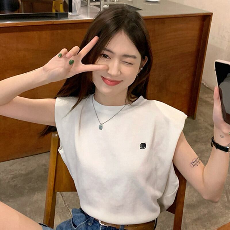 ストライプタンクトップ夏ルーズスパイシーノースリーブ WomenTops ラウンドネックスリムフィット Tシャツを着ている女子 サマー 夏物 Oネック