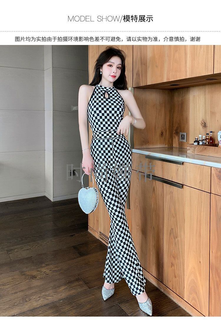 オフィスレディスーツ レディース 夏 ドリップネック ノースリーブ タンクトップ 市松フレアパンツ 2点セット 服 サマー 夏物 会社 学校 通勤や通学にも