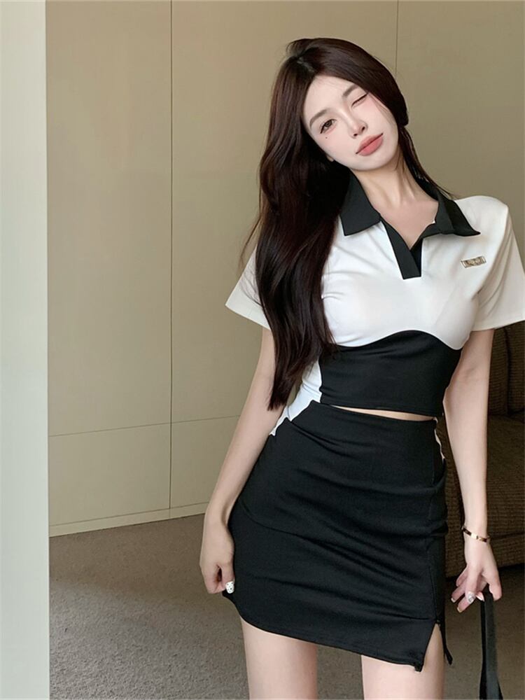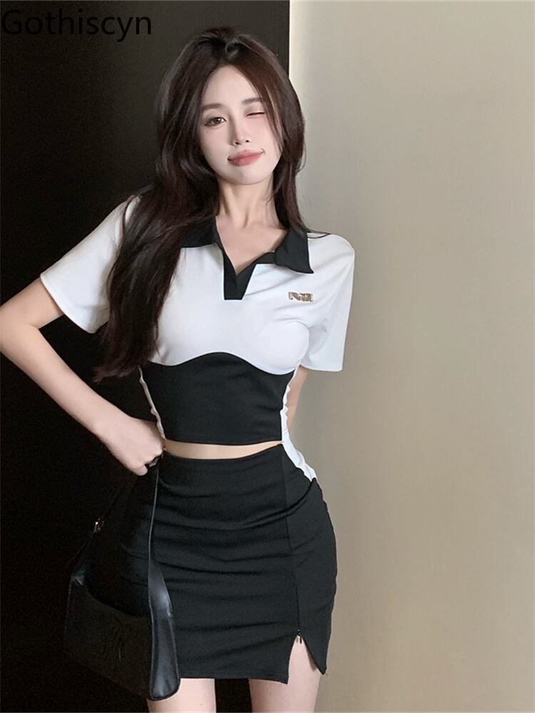 Gothiscyn ホットガール半袖 Tシャツ黒スカート 2 ピーススーツ夏ウエストスキニーセクシースーツ ブラック サマー 夏物