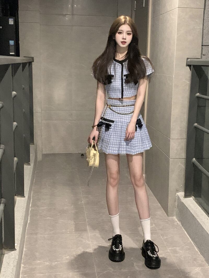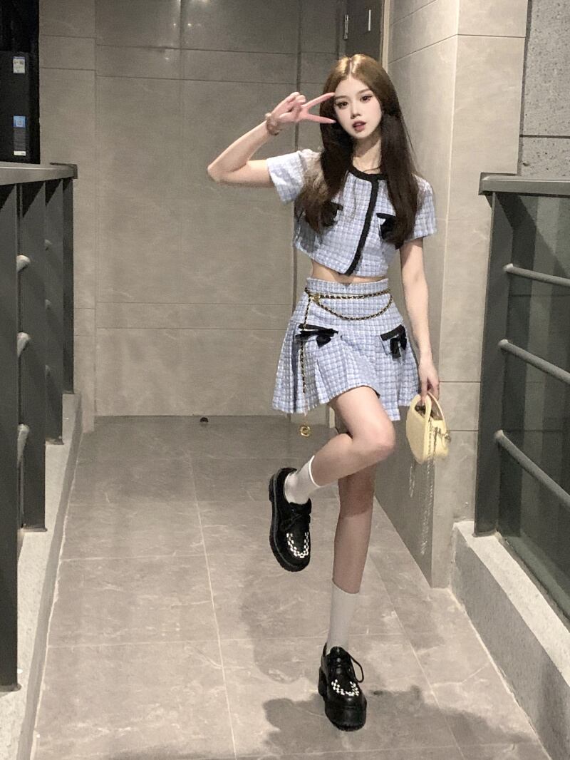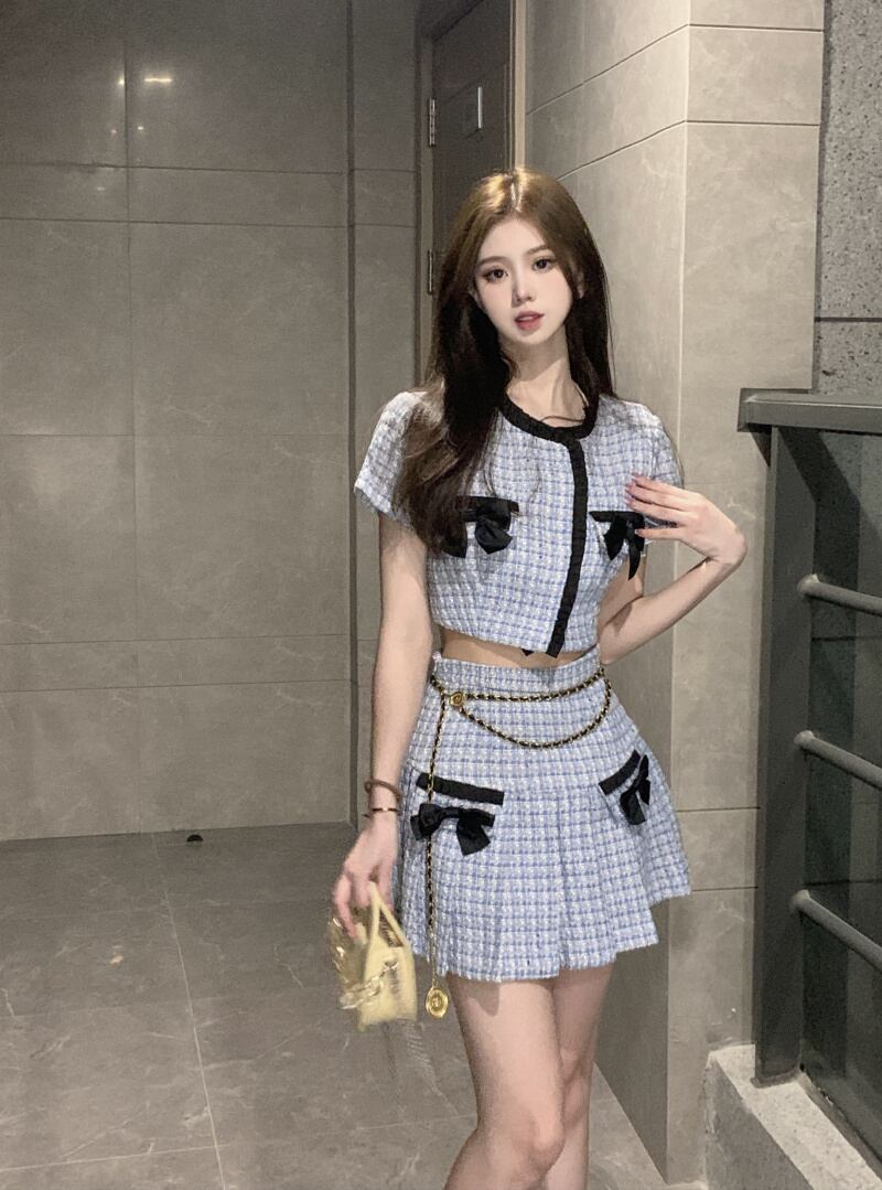 Sweet Girl スーツ レディース リボン 半袖 シャツ トップス 春 ウエスト プリーツ スカート 2点セット 服 ショート ハーフスリーブ 大人ガーリー スウィート キュート カジュアル スプリング 春物