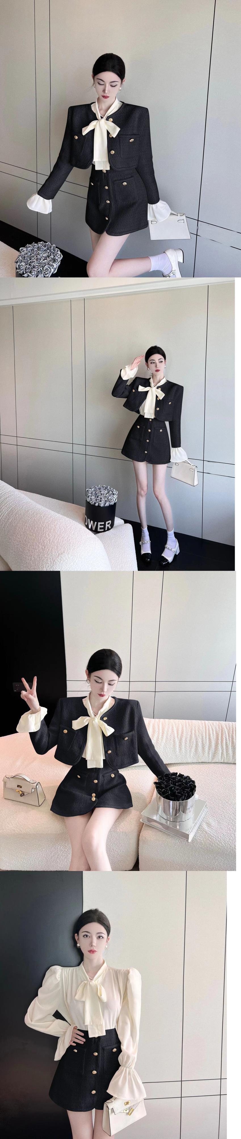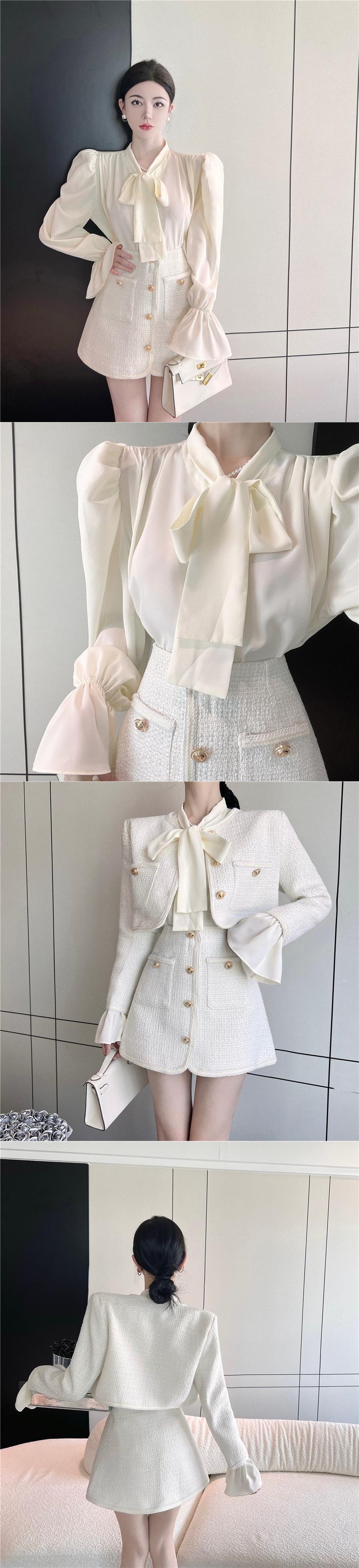 Gothiscyn 3 点セットレディース衣装フレアスリーブシャツショートコートウエストスカート婦人服秋スカートセット オータム 秋物 ソリッドカラー