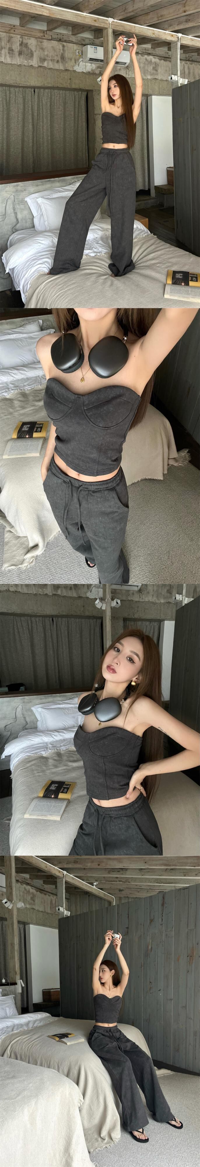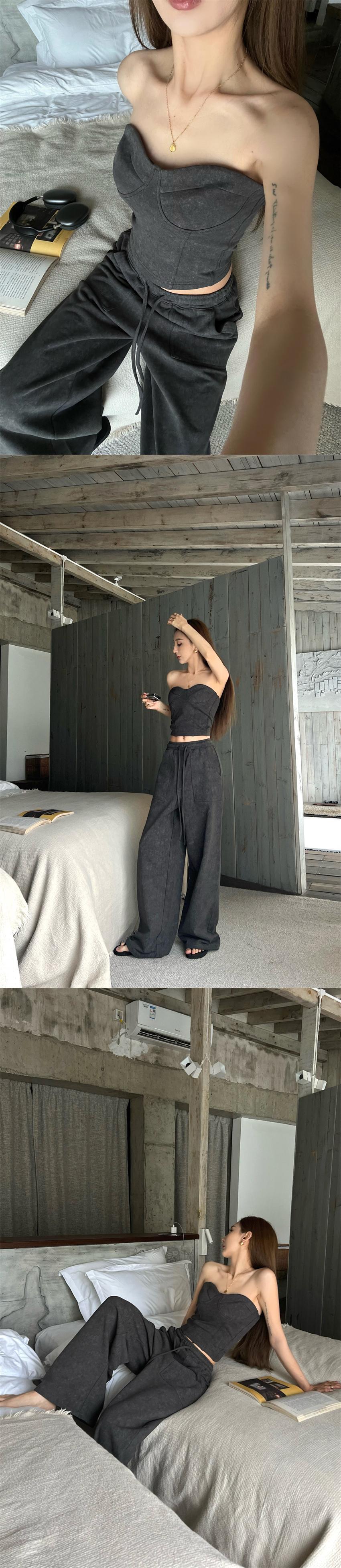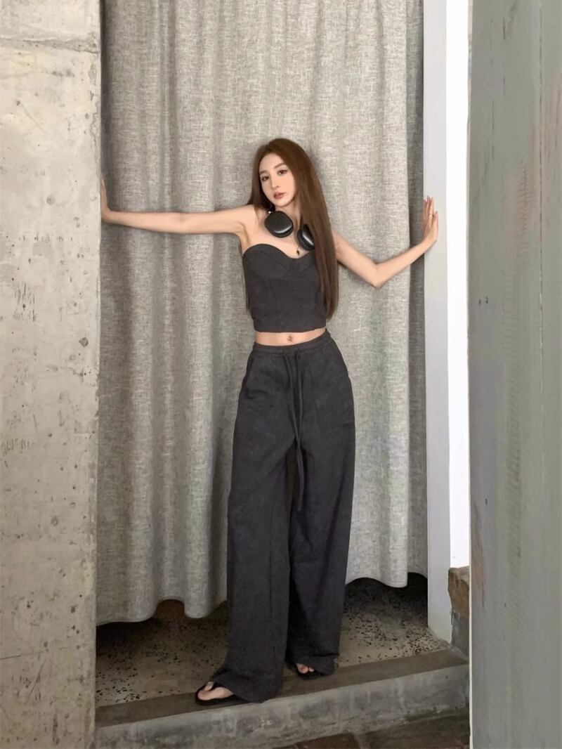レトロスーツ夏ノースリーブストラップレストップウエストワイドレッグパンツ 2 点セット服 サマー 夏物 ワイドパンツ