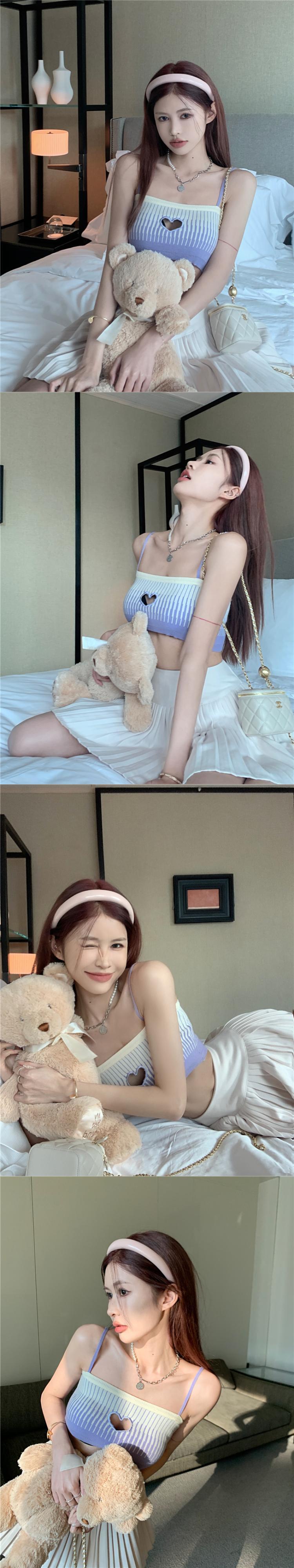 甘くてホット女子タンクトップ夏ショートハート中空アウトニットストラップボトム純粋セクシートップ服 大人ガーリー スウィート キュート カジュアル サマー 夏物 ピュア