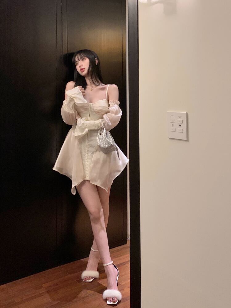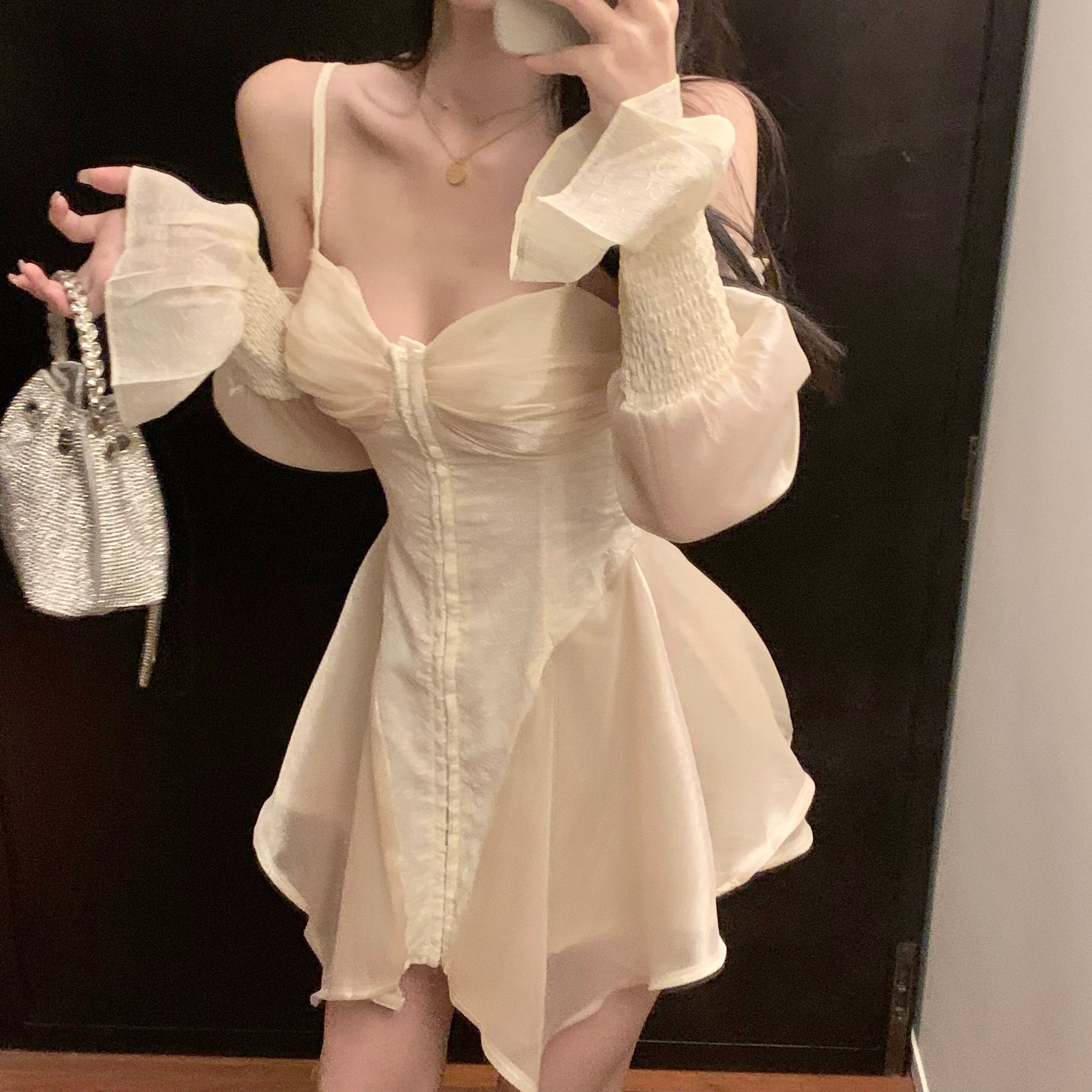 Gothiscyn ドレスセクシー純粋欲望マーメイド妖精スリングドレス夏ウエスト不規則ホットガールシックドレス サマー 夏物 ピュア