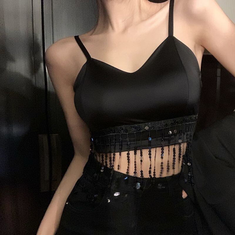 キャミソールスパイシーガールセクシー電話スパンコールバックストラップタンクトップ胸パッド付き純粋欲望スタイルペア内側と外側着用ブラジャー ピュア