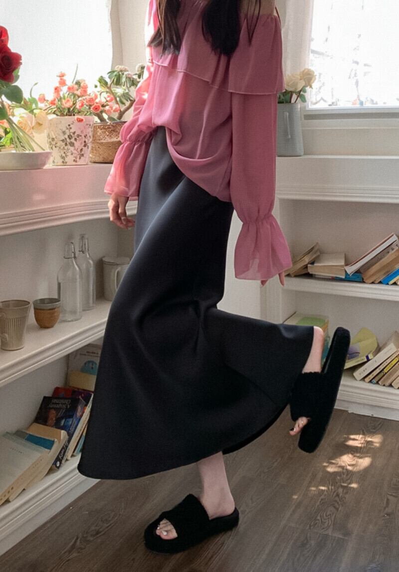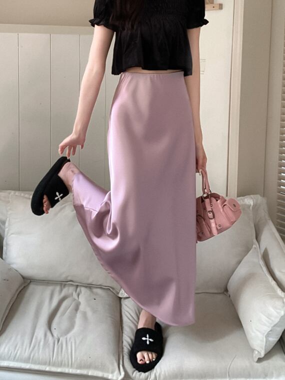 パープルサテンドレープミッドレングススカートレディース夏ウエストスリム尻ラップマーメイドスカートとエンドスカート サマー 夏物