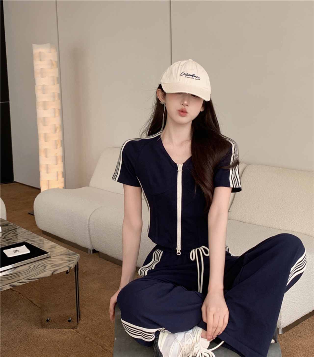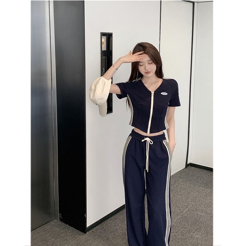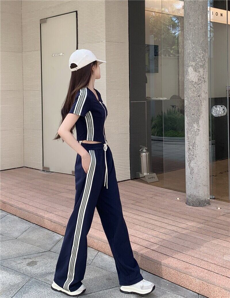 シックスタイルスーツ夏スリムフィット V ネック長袖コートルーズパンツ 2 点セット服 ロング サマー 夏物 Vネック