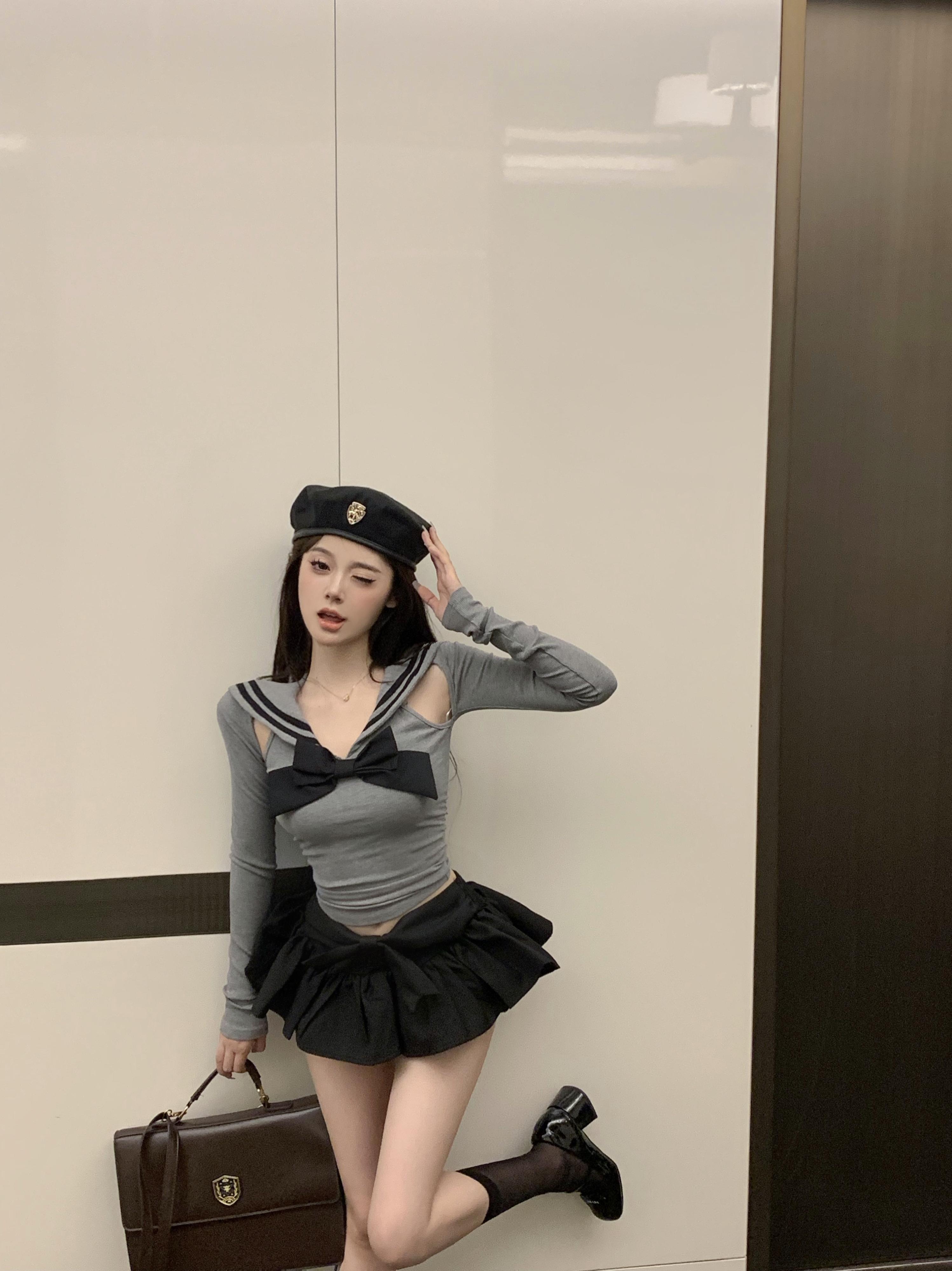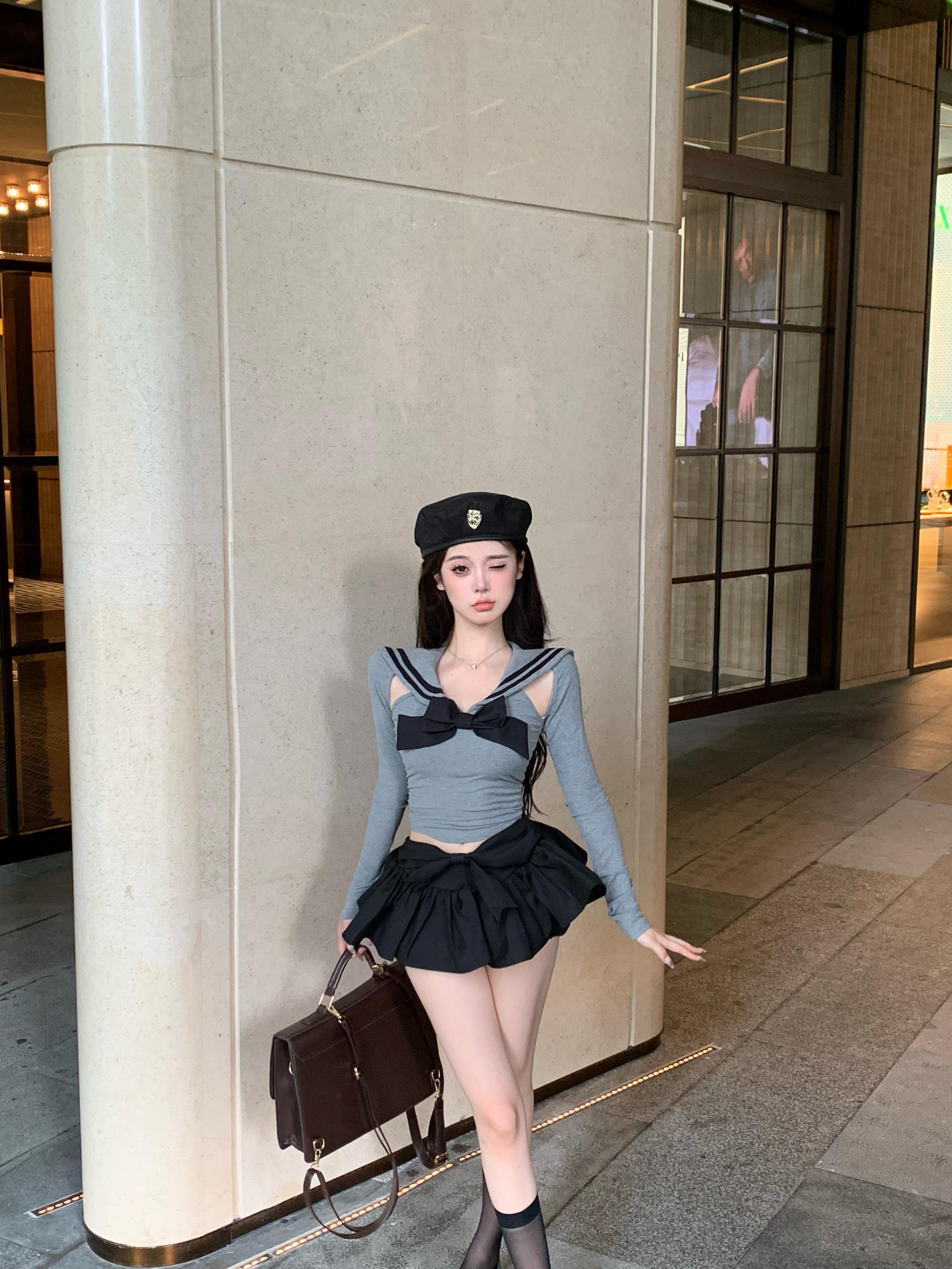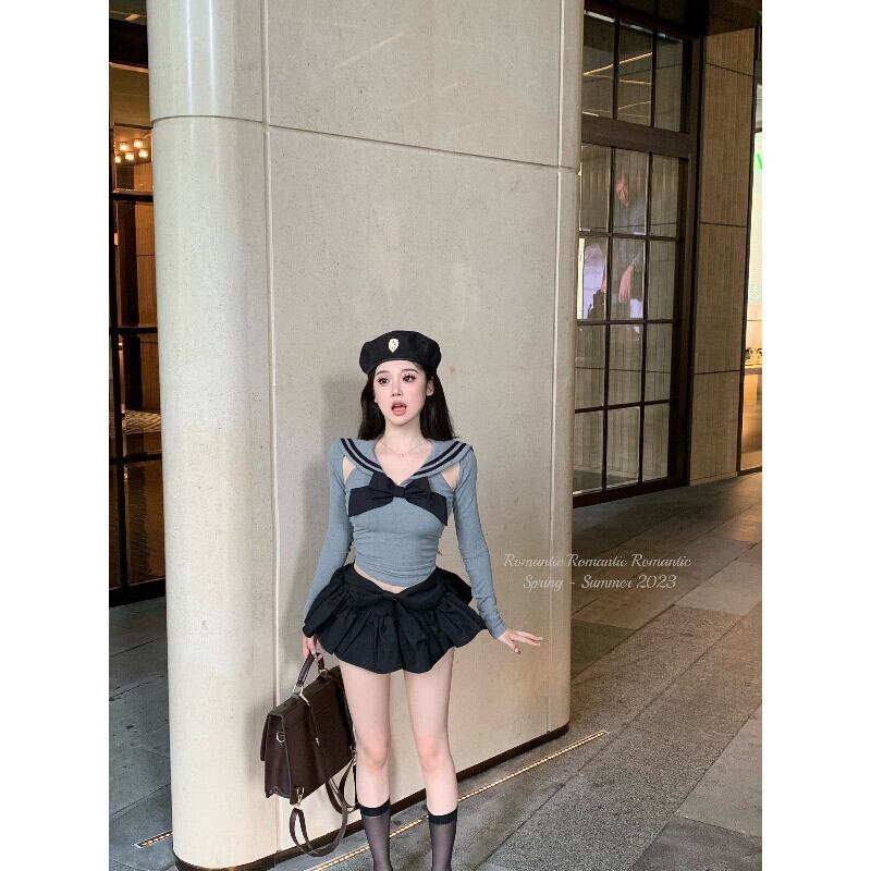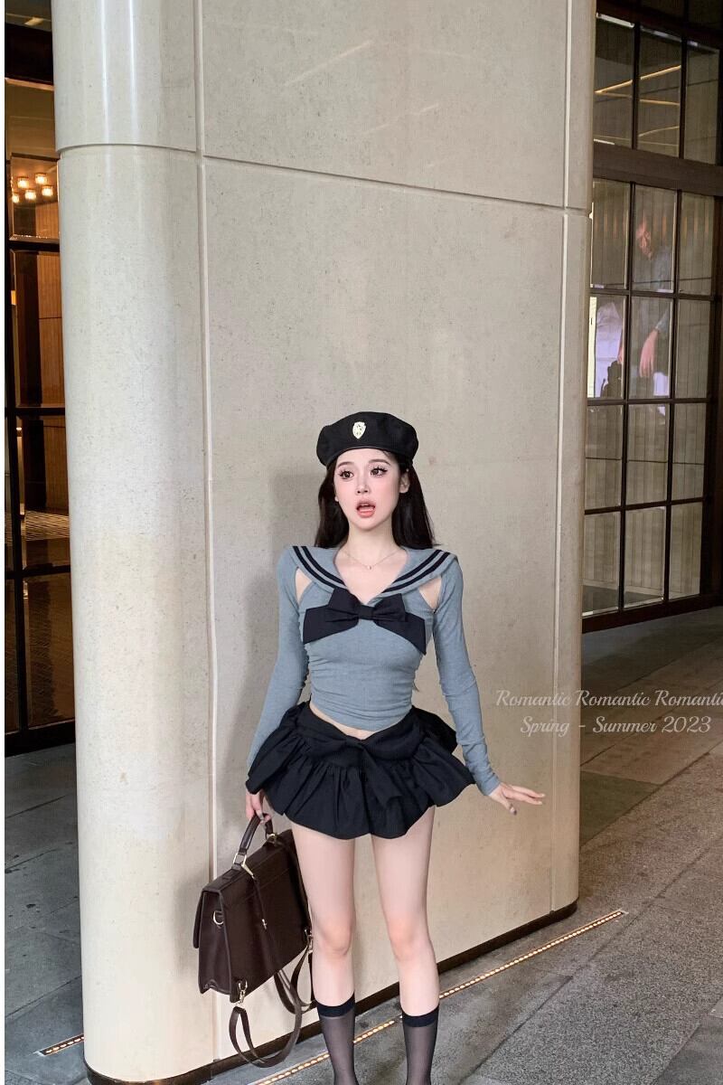 甘くてホットガールシックスーツ夏セーラー襟半袖トップス A ラインふわふわスカート 2 点セット服 大人ガーリー スウィート キュート カジュアル サマー 夏物 Aライン