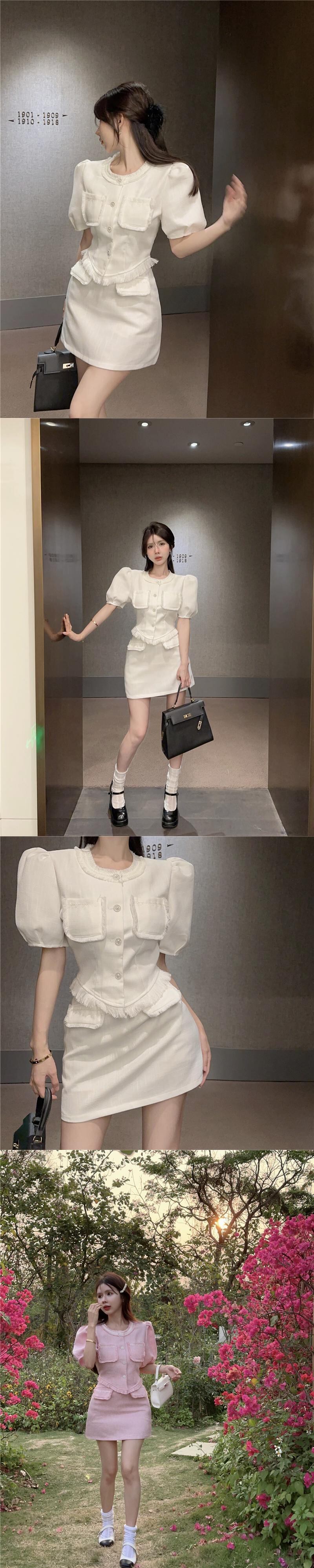 Sweet Girl フレンチ スタイル スーツ レディース スリム フィット 電話エッジ ショート トップ ウエスト ミニ スカート 2 点セット服 大人ガーリー スウィート キュート カジュアル