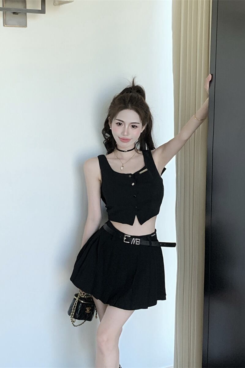 甘いホットガールズスーツ夏セクシーノースリーブフード付きトップウエストショーツ 2 点セット服 大人ガーリー スウィート キュート カジュアル サマー 夏物 ブルマー