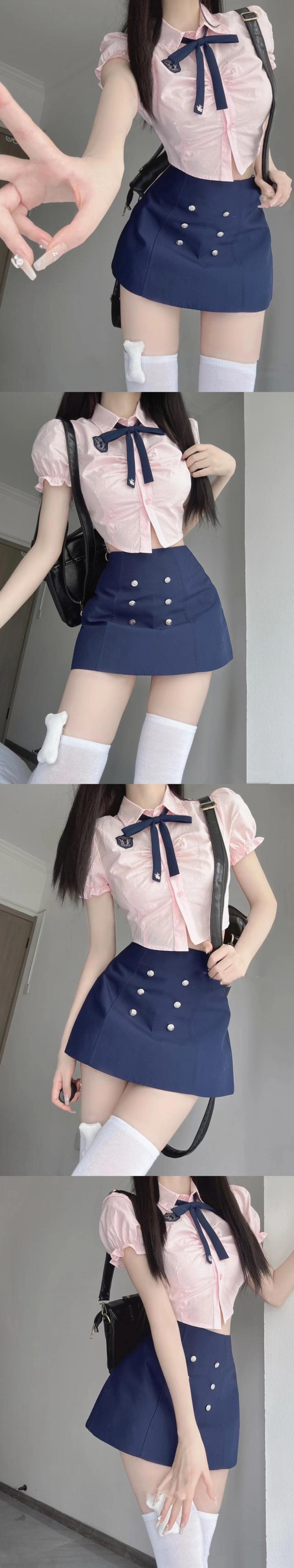 純粋セクシーホットガールスーツ夏プリーツショートシャツウエスト A ラインミニスカート 2 点セット服 サマー 夏物 Aライン