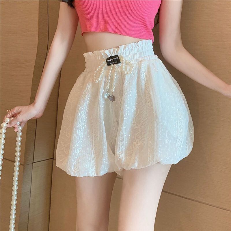 ビーズ刺繍ウエストルーズブロッサムパンツ夏スリムワイドレッグパンツ多用途ランタンショーツトレンド サマー 夏物 ブルマー ワイドパンツ