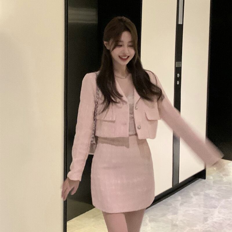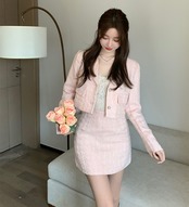 春と秋オフィスレディスーツレディースツイード長袖ショートコートウエストスカート2点セット服 ロング スプリング 春物 オータム 秋物 会社 学校 通勤や通学にも