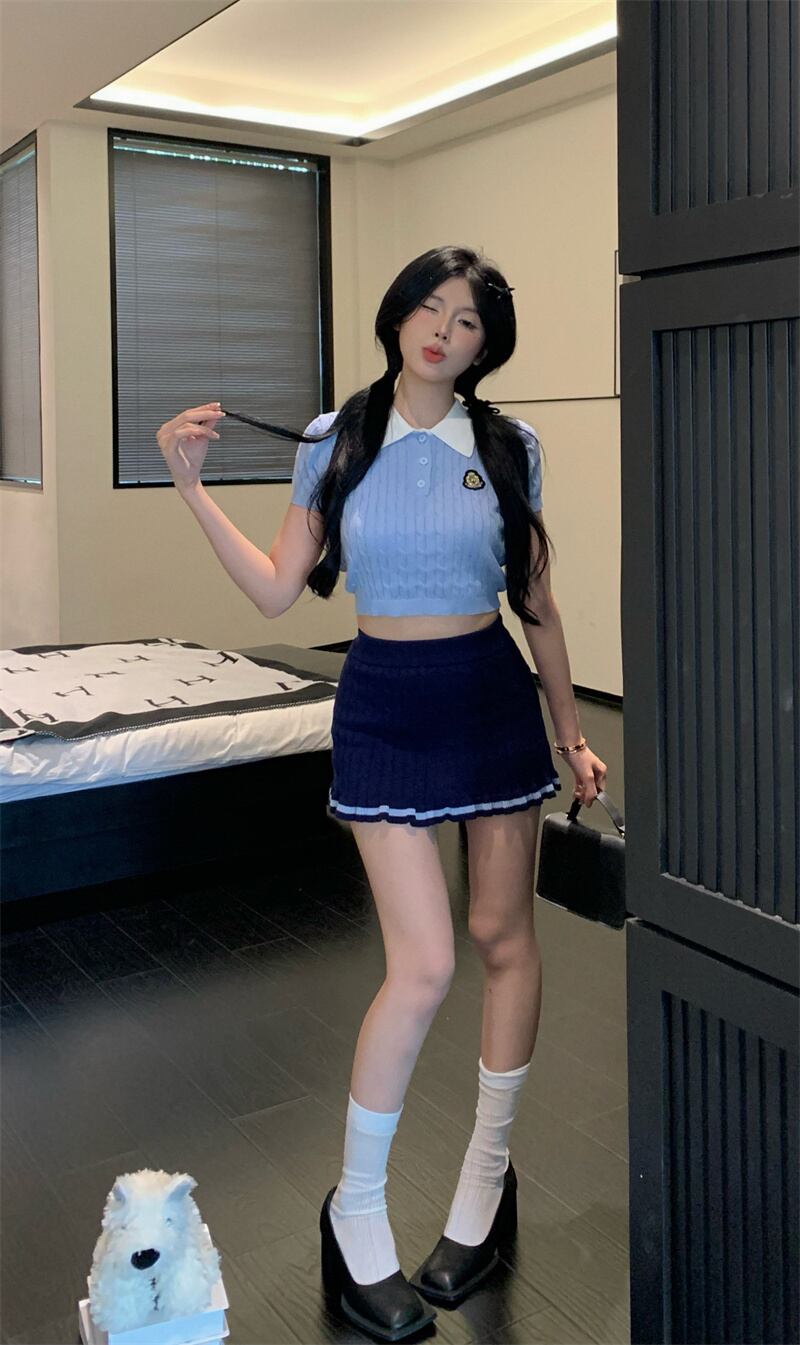 スタイルスーツ夏ターンダウン襟ニット半袖トップラップヒップミニスカート 2 点セット服 サマー 夏物