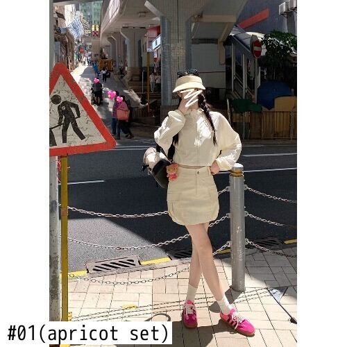 スイートホットガールスーツ夏長袖ジップアップコートウエストミニスカートツーピースセット服 ロング 大人ガーリー スウィート キュート カジュアル サマー 夏物