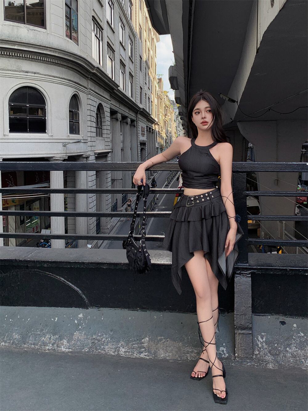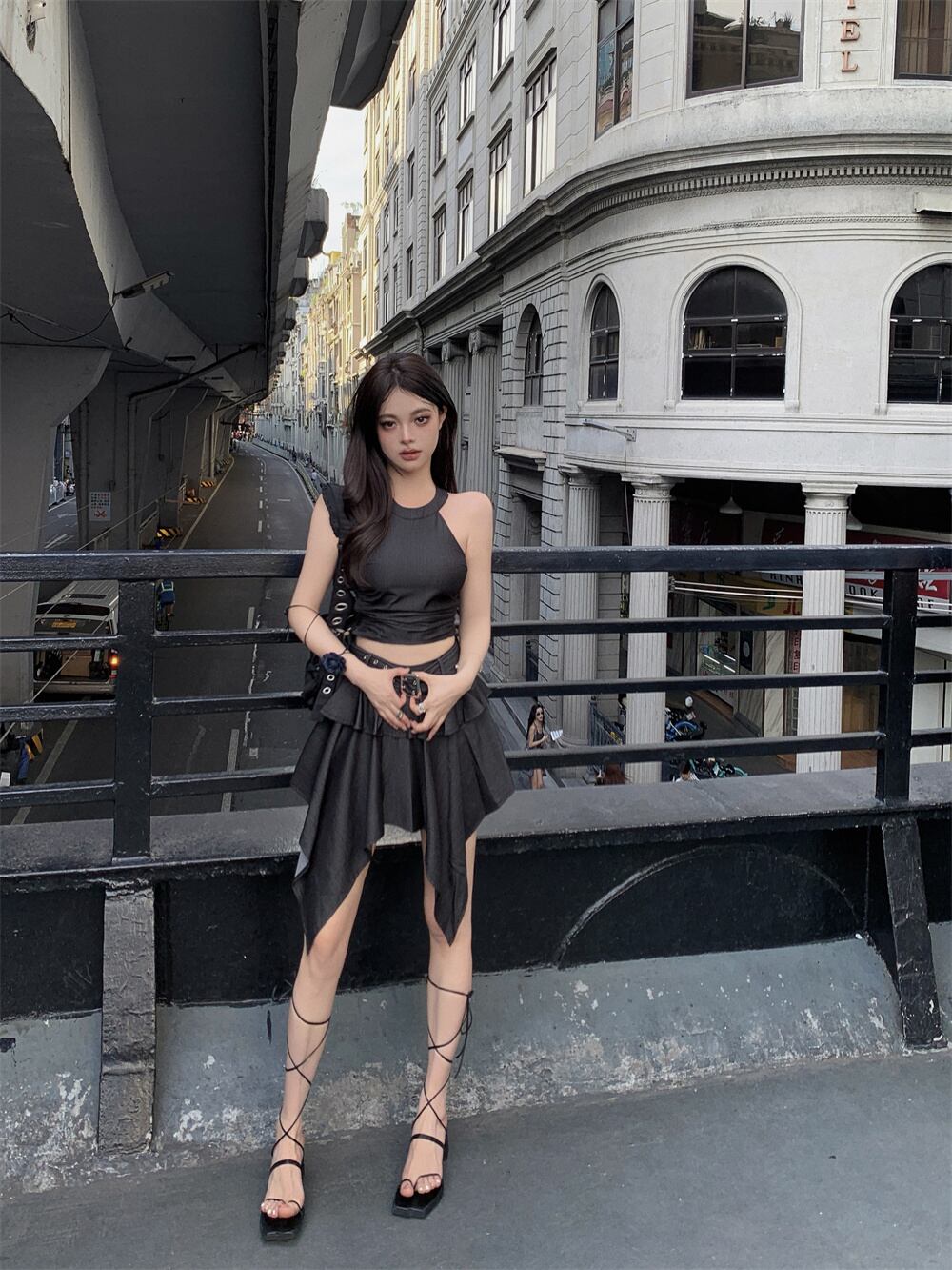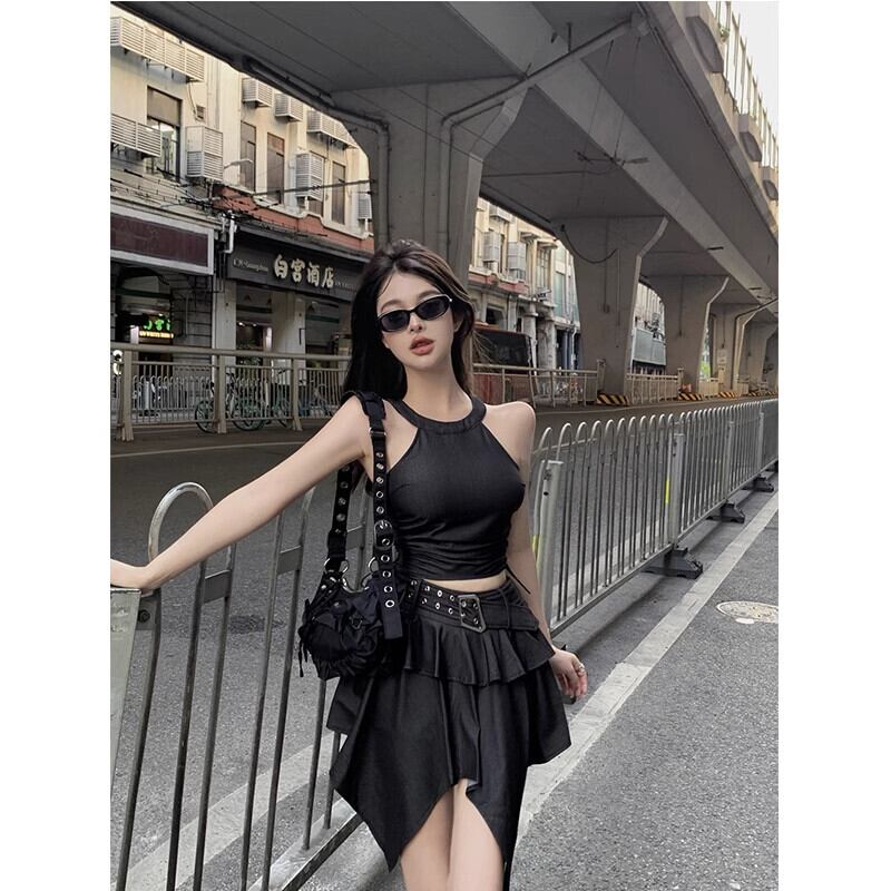 ホットガールスーツ夏オフショルダースリムフィット巾着プリーツタンクトップウエスト不規則ショートスカート 2 点セット サマー 夏物