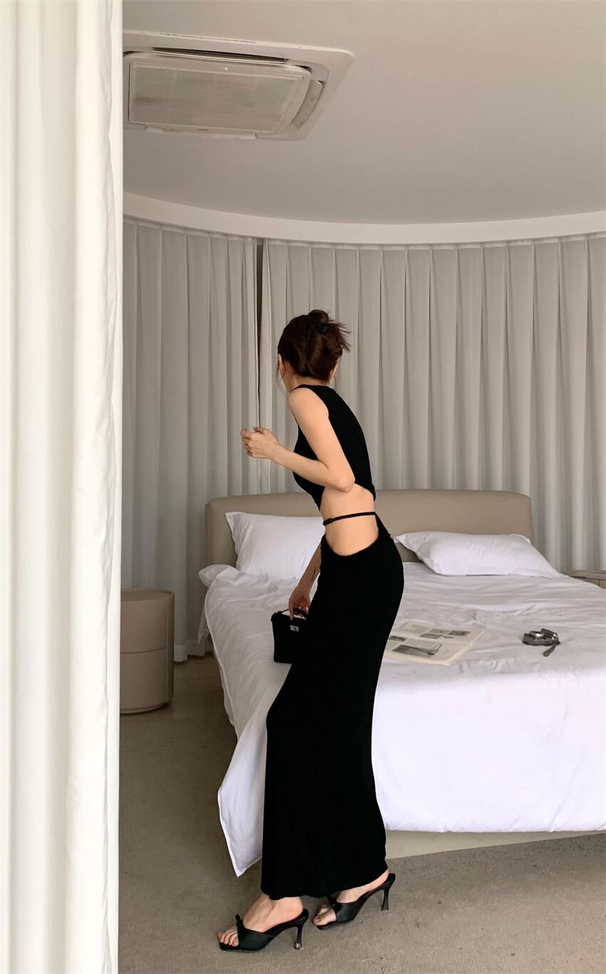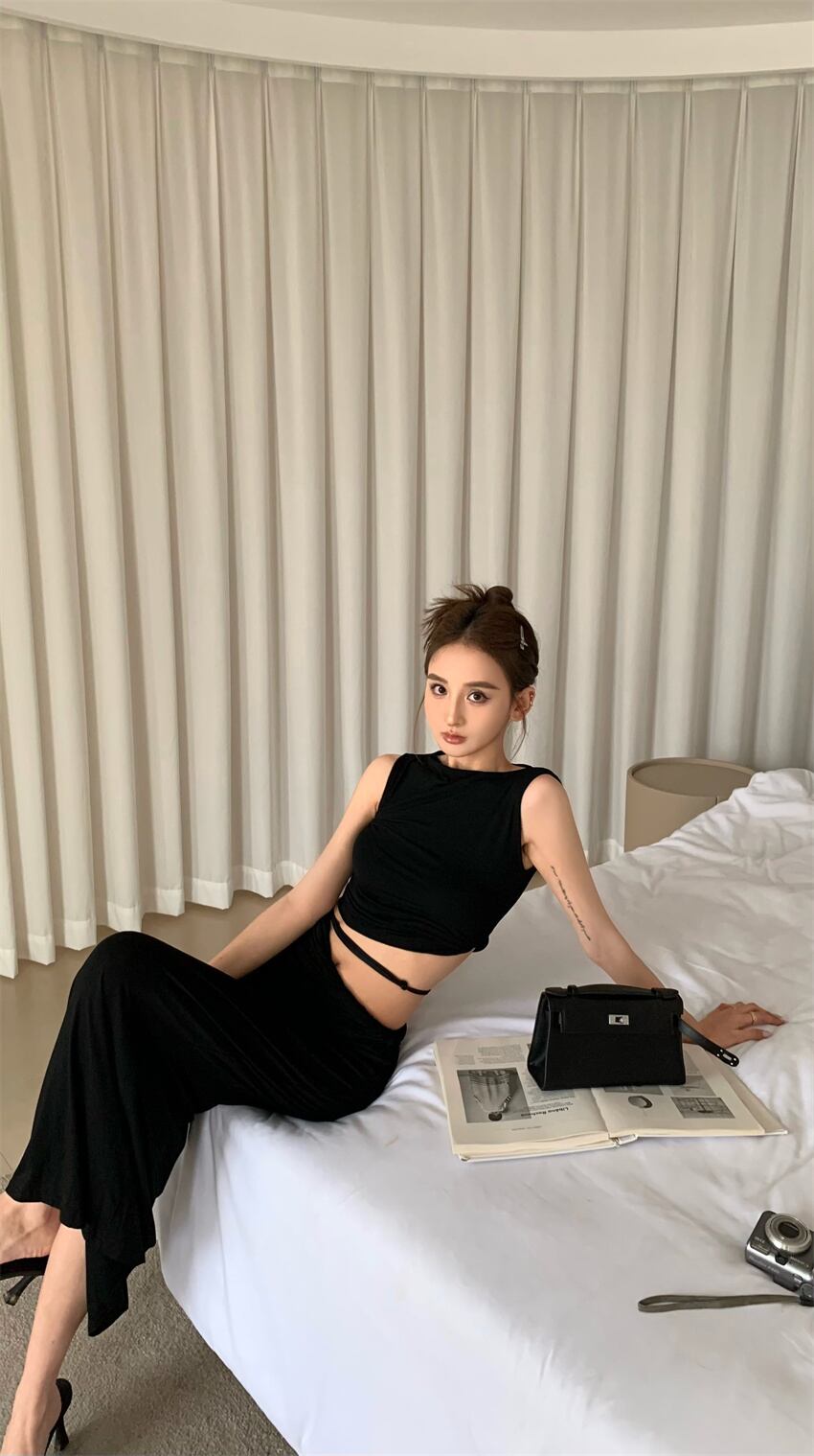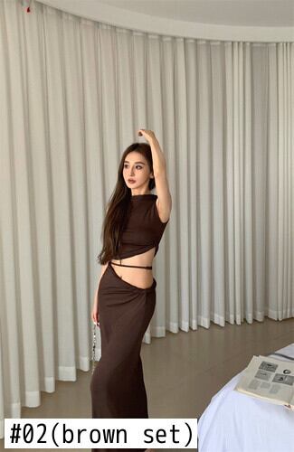 セクシーホットガールスーツ夏ノースリーブタンクトップウエストラップヒップロングスカートツーピースセット服 サマー 夏物
