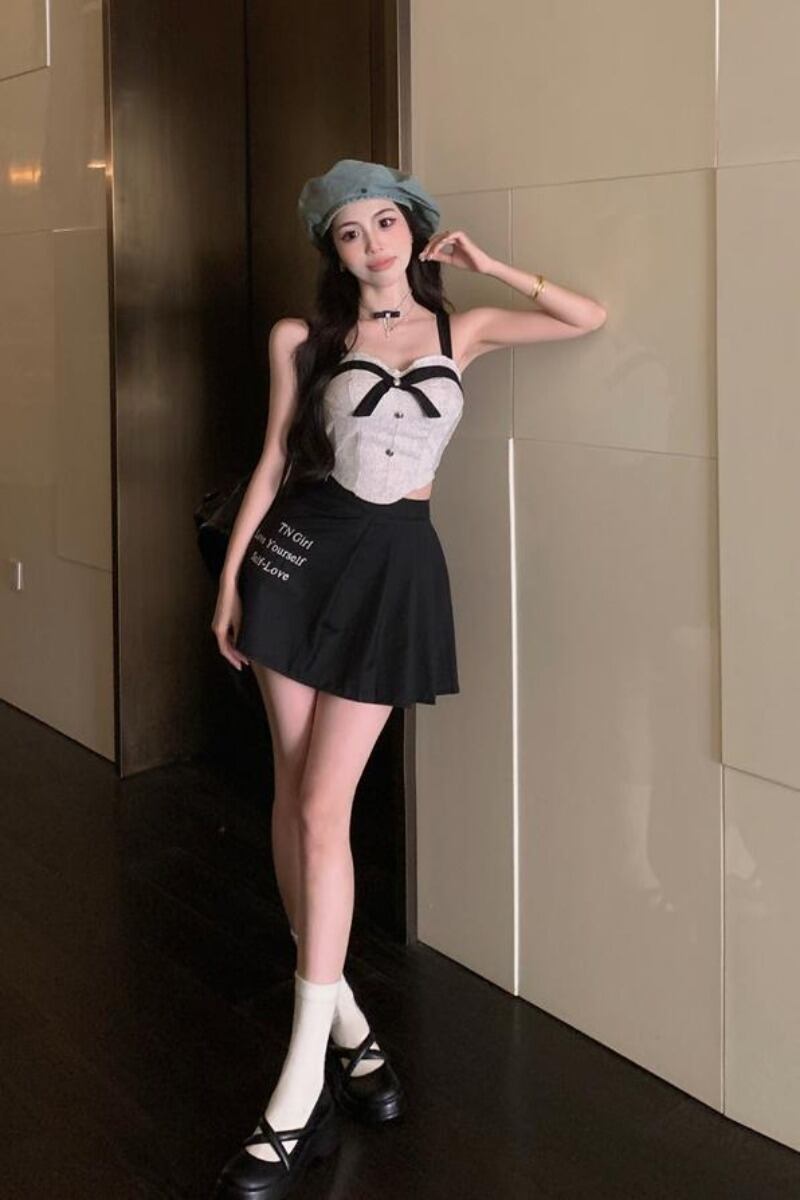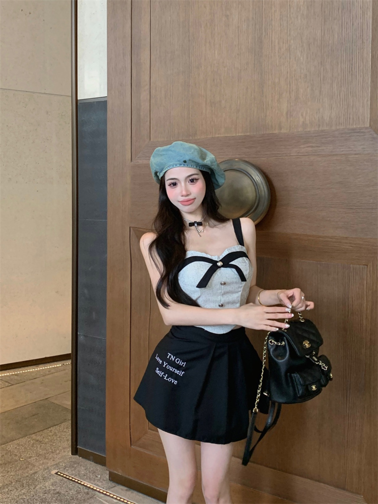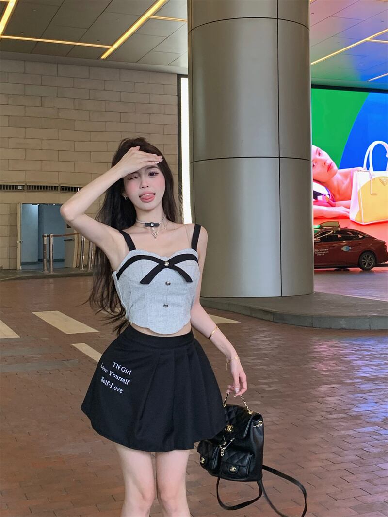 スタイルスイートガールズスーツ夏魚骨ストラップトップ A ラインプリーツスカート 2 点セット服 大人ガーリー スウィート キュート カジュアル サマー 夏物 Aライン