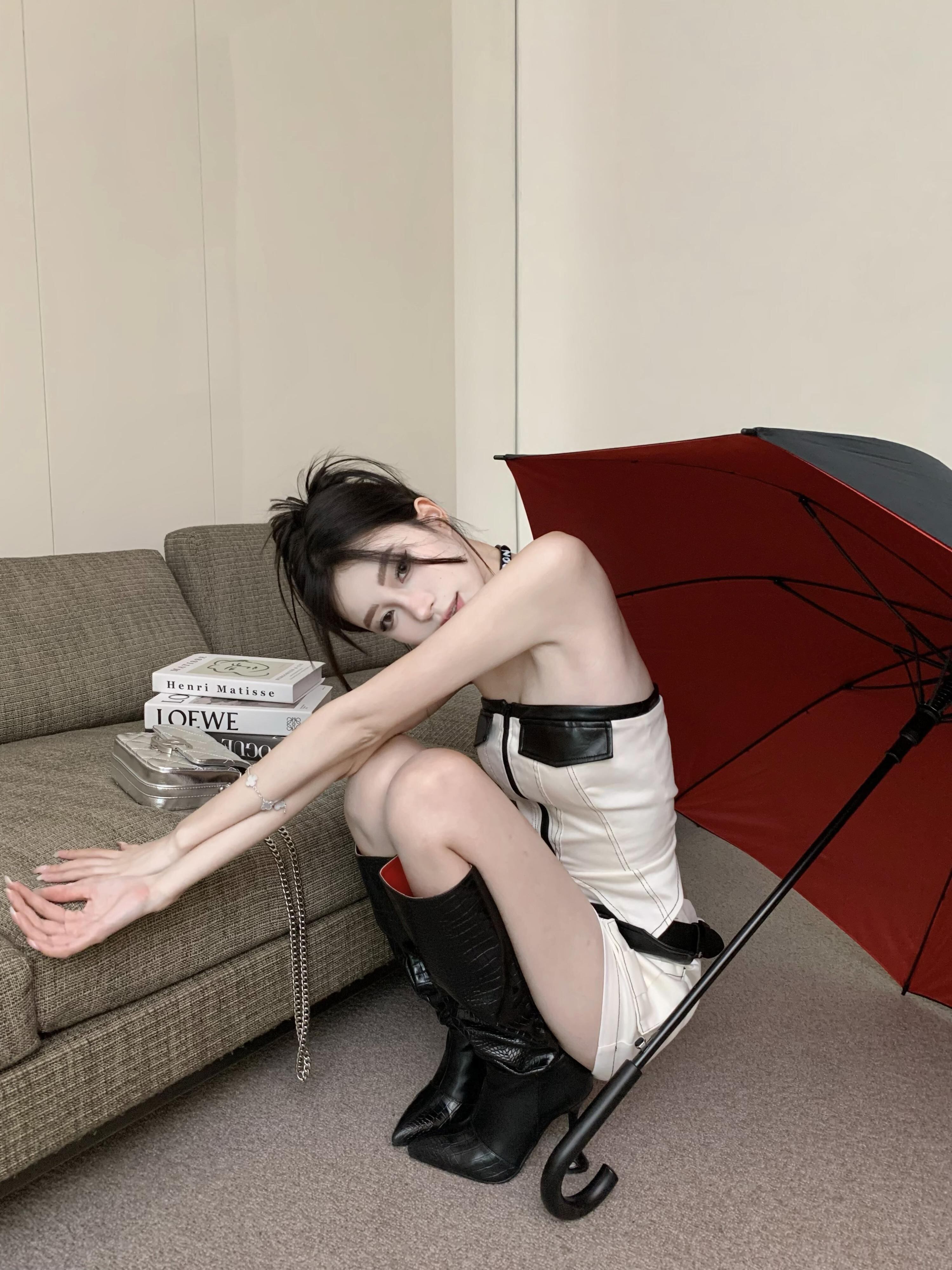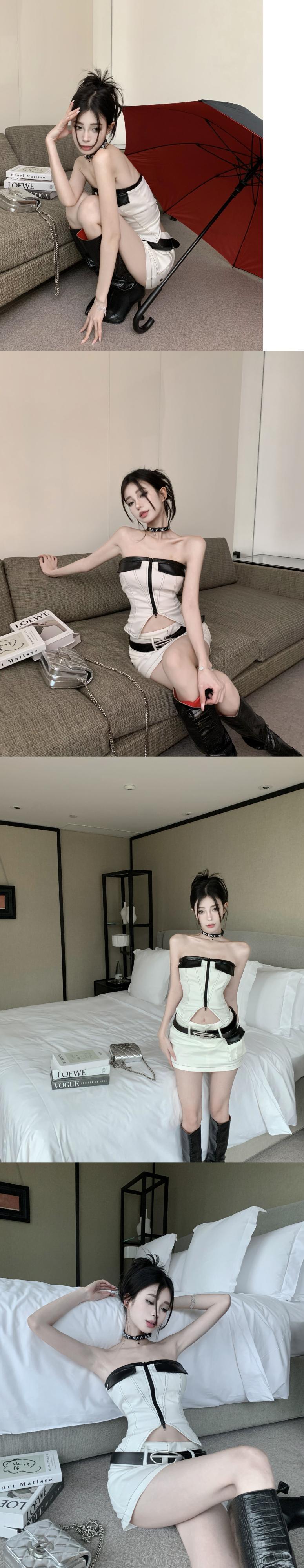スイートクールホットガールスーツ夏ストラップレスジッパーショートトップウエストミニスカートツーピースセット服 大人ガーリー スウィート キュート カジュアル サマー 夏物