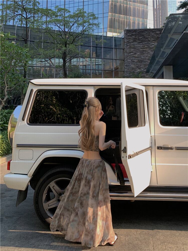 レトロスーツ夏タイダイストラップレストップウエスト多彩ロングスカートツーピースセット服 サマー 夏物