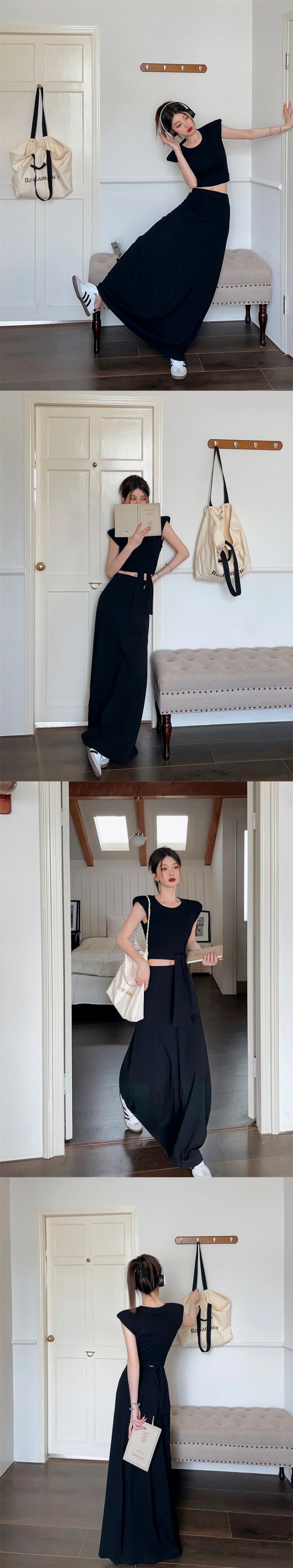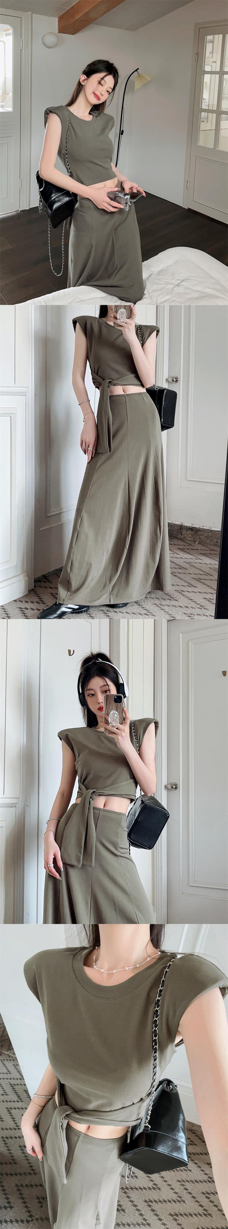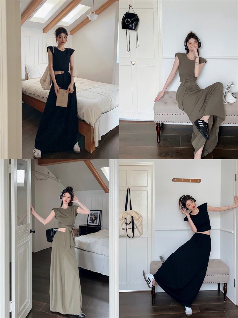 スタイルホットガールスーツソリッド V ネック多用途タンクトップスリムフィットロングスカート 2 点セット服 Vネック ソリッドカラー