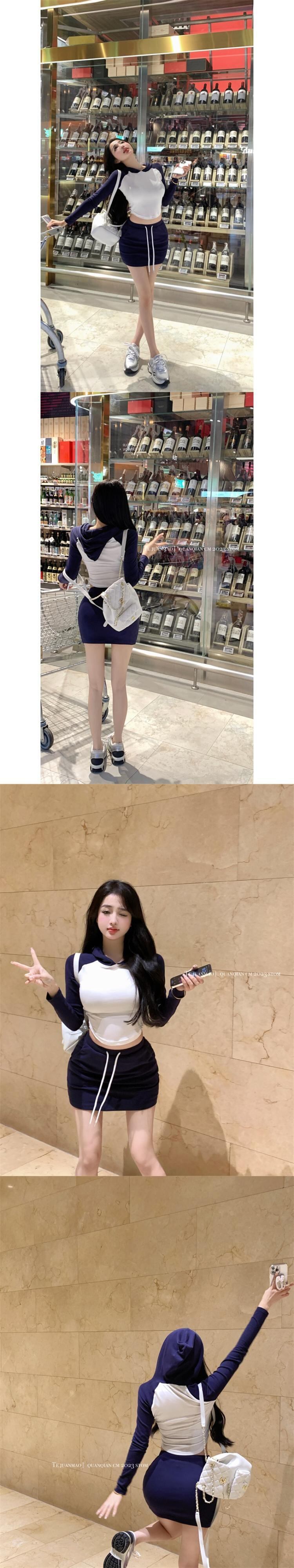 スポーツスーツ夏フード付きパネル Tシャツショートトップラップヒップミニスカート 2 点セット服 サマー 夏物