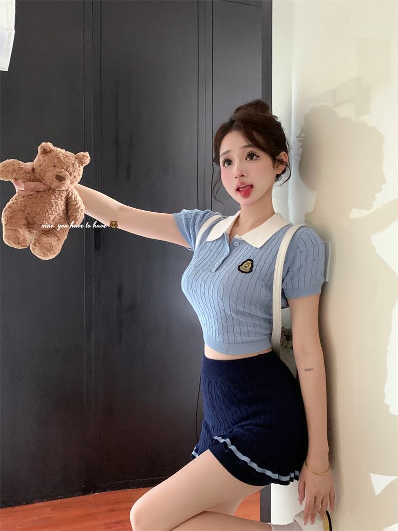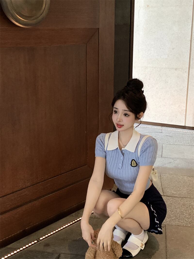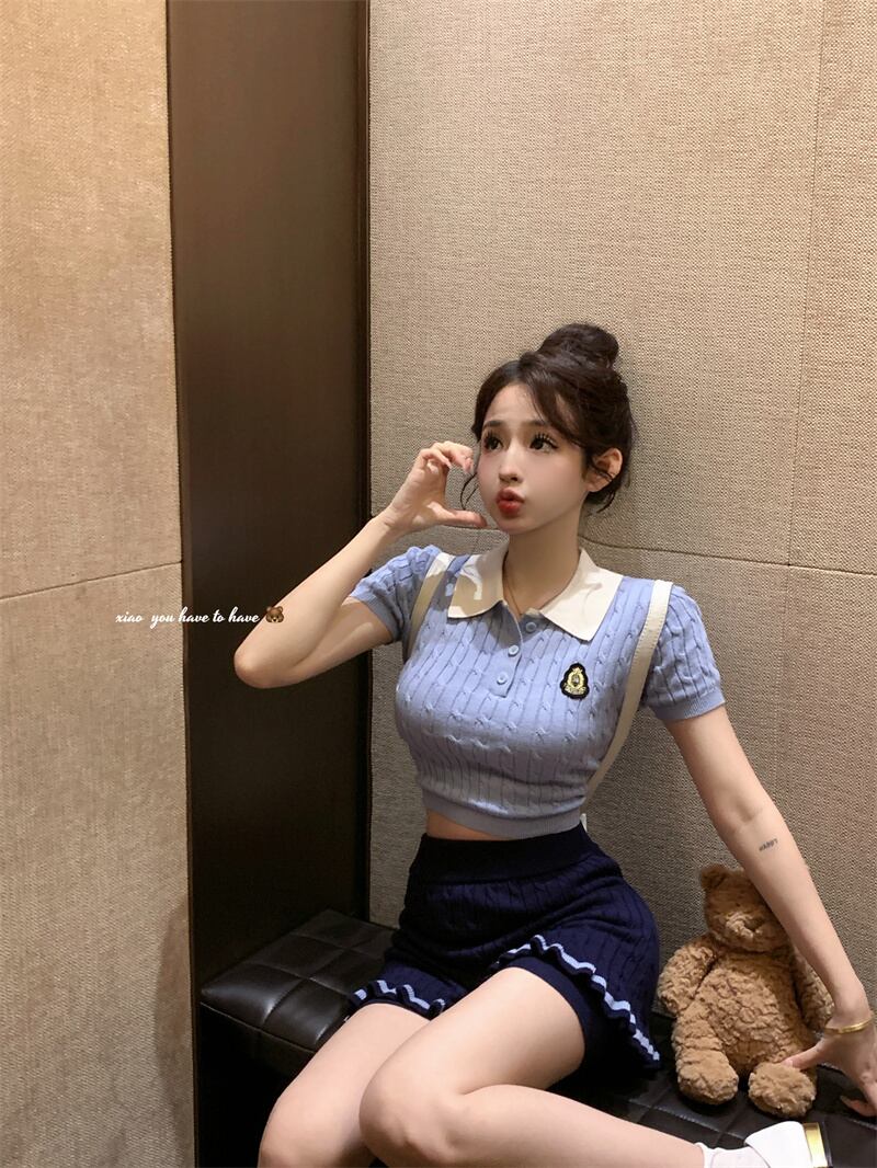 スタイルスイートホットガールスーツ夏半袖ニットウェア Tシャツプリーツショートスカート 2 点セット服 大人ガーリー スウィート キュート カジュアル サマー 夏物