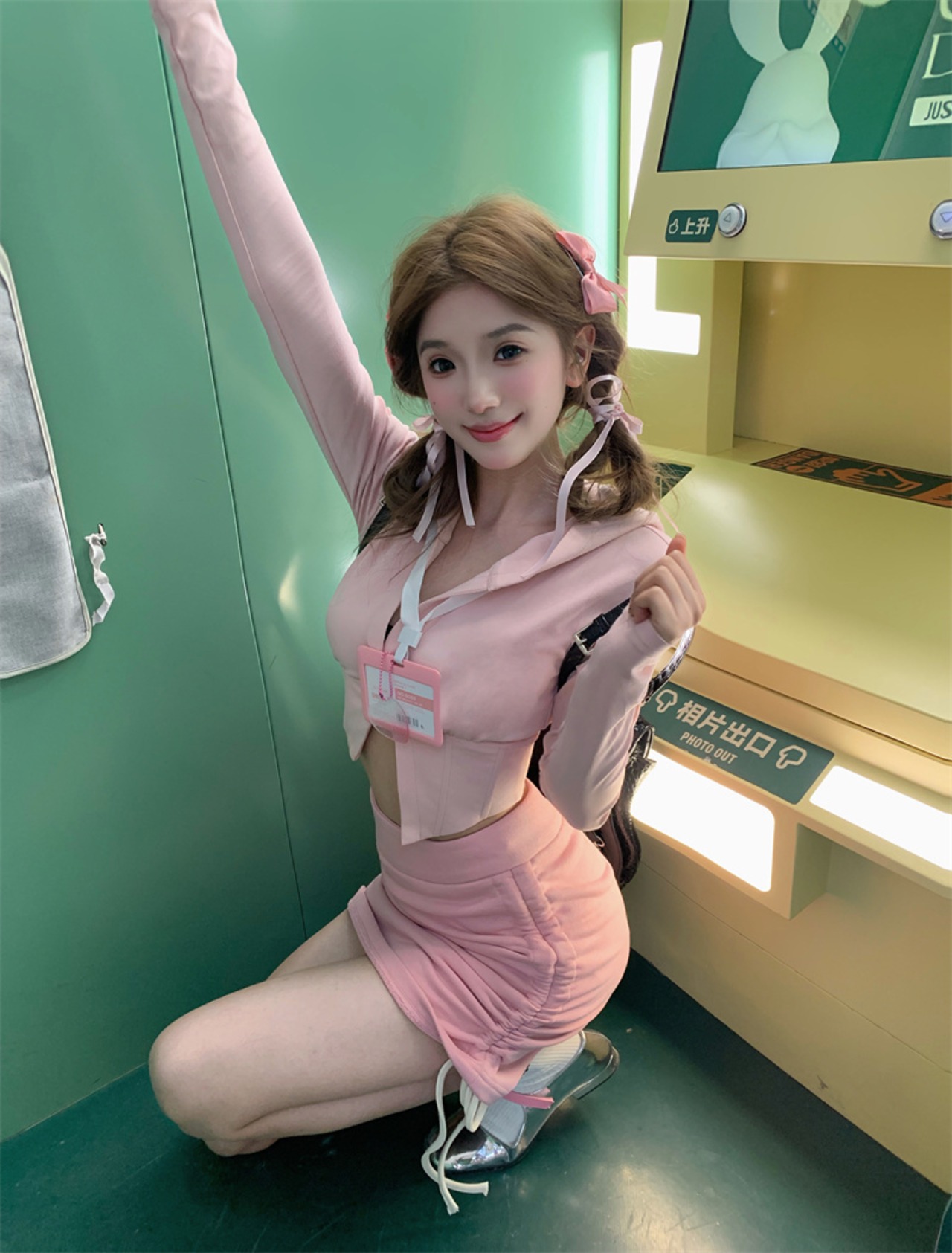 春ピンクホットガールスーツ甘いフード付き長袖トップウエストラップヒップスカート 2 点セット服 ロング 大人ガーリー スウィート キュート カジュアル スプリング 春物