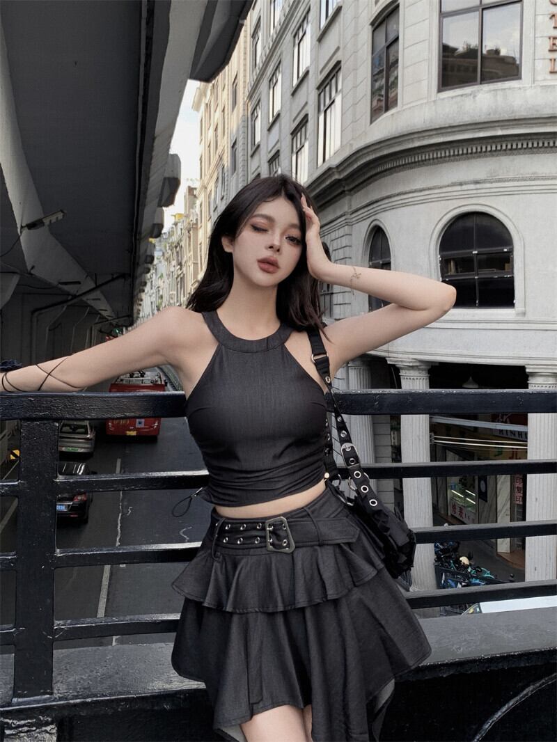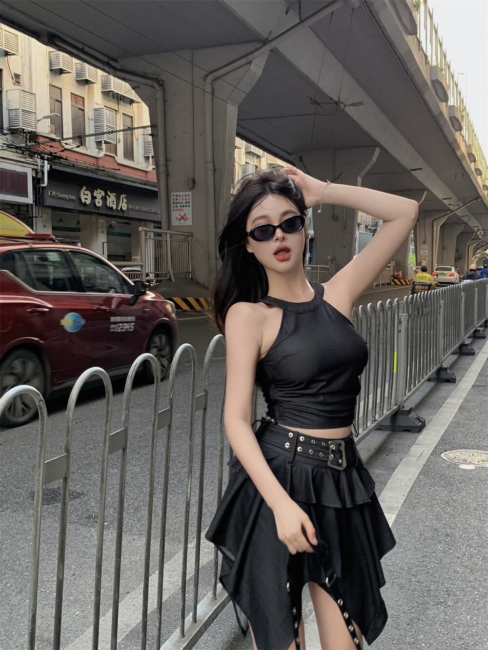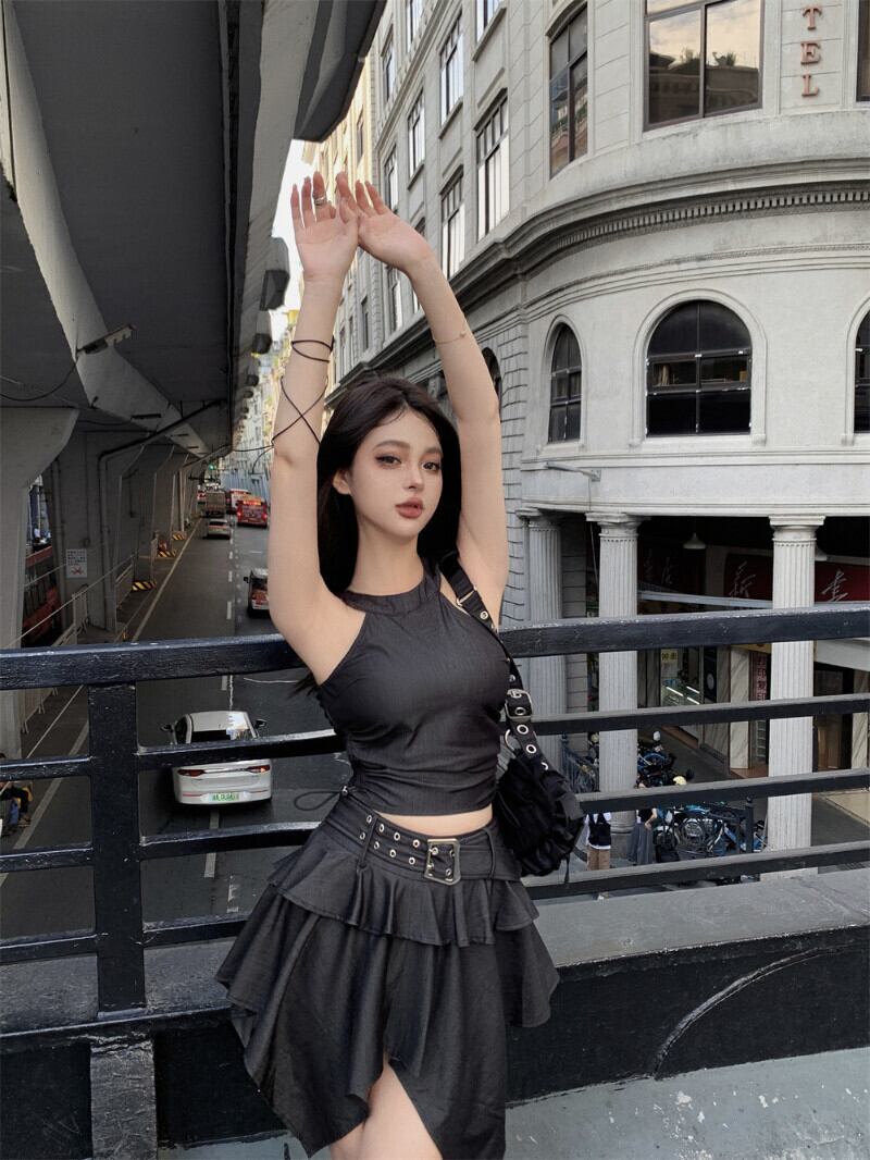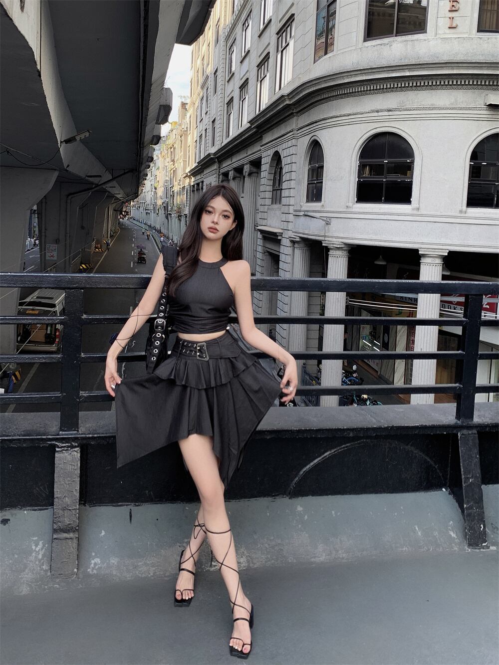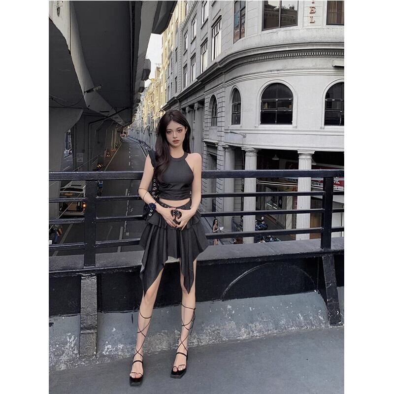 ホットガールスーツ夏オフショルダースリムフィット巾着プリーツタンクトップウエスト不規則ショートスカート 2 点セット サマー 夏物