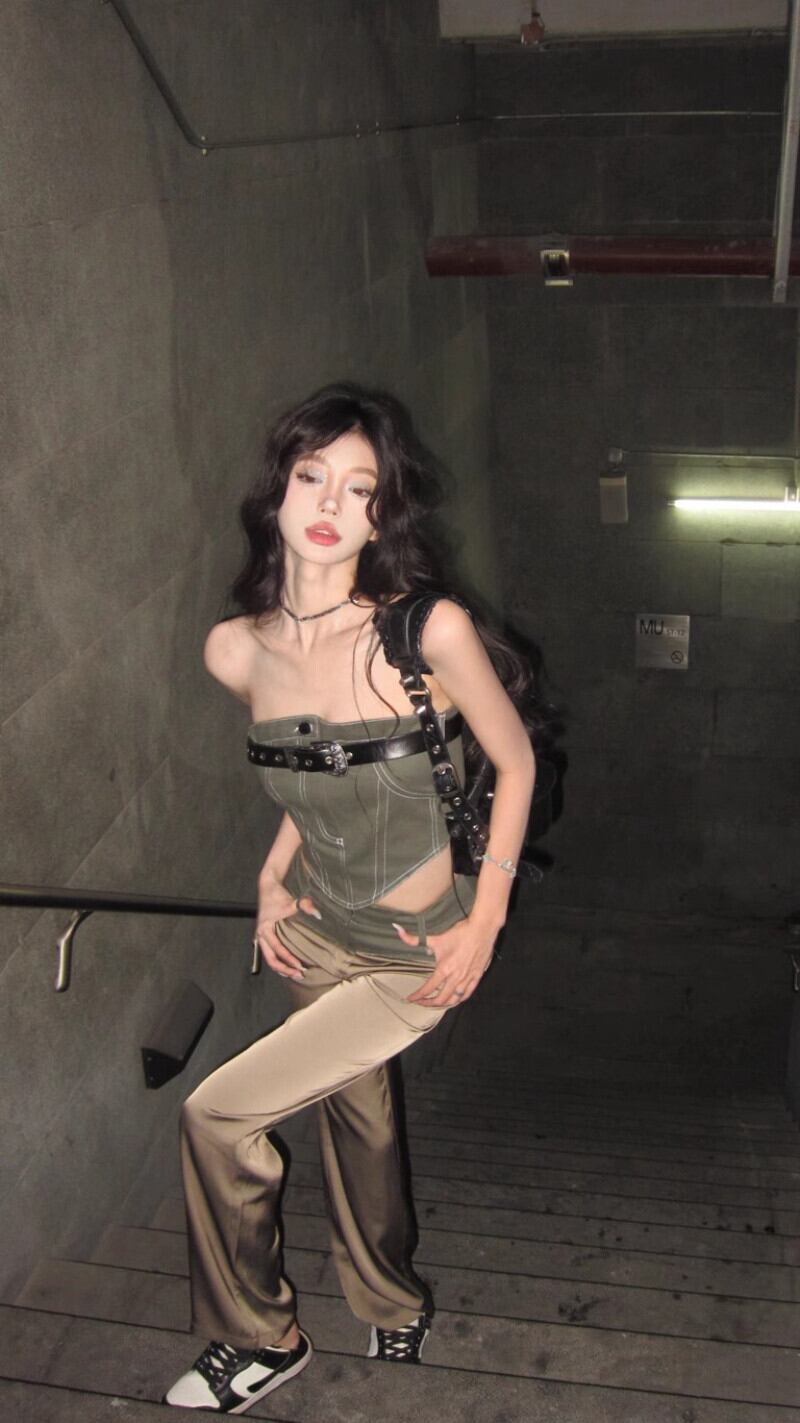 ホットガールアメリカンレトロスーツ夏ストラップレスベストトップウエストパンツツーピースセット服 サマー 夏物